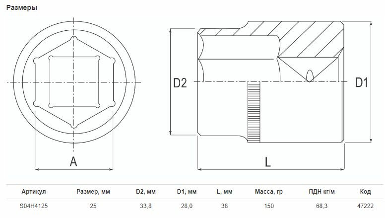Размеры головок 1/2"dr свыше 32 мм применяются только со стандартными для системы нагрузками.