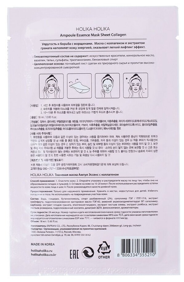| Коллекция | Holika Holika Ampoule Essence Mask Sheet Collagen |