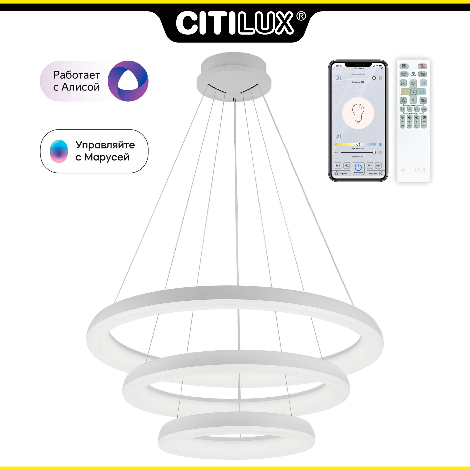 Подвесная светодиодная диммируемая люстра с поддержкой Алиса и пультом ДУ Citilux Юпитер Смарт CL730A150S