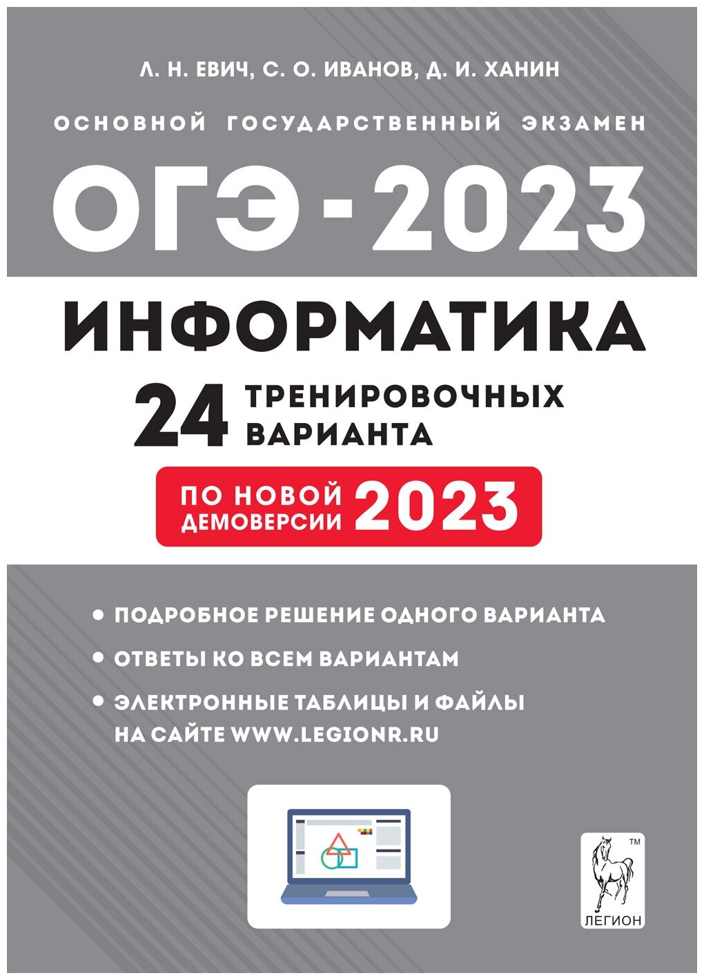 ОГЭ 2023. Информатика. 9 класс. 24 тренировочных варианта по демоверсии 2023 года (Евич Людмила Николаевна, Иванов Сергей Олегович (соавтор), Ханин Дмитрий Игоревич (соавтор)); Легион, 2022