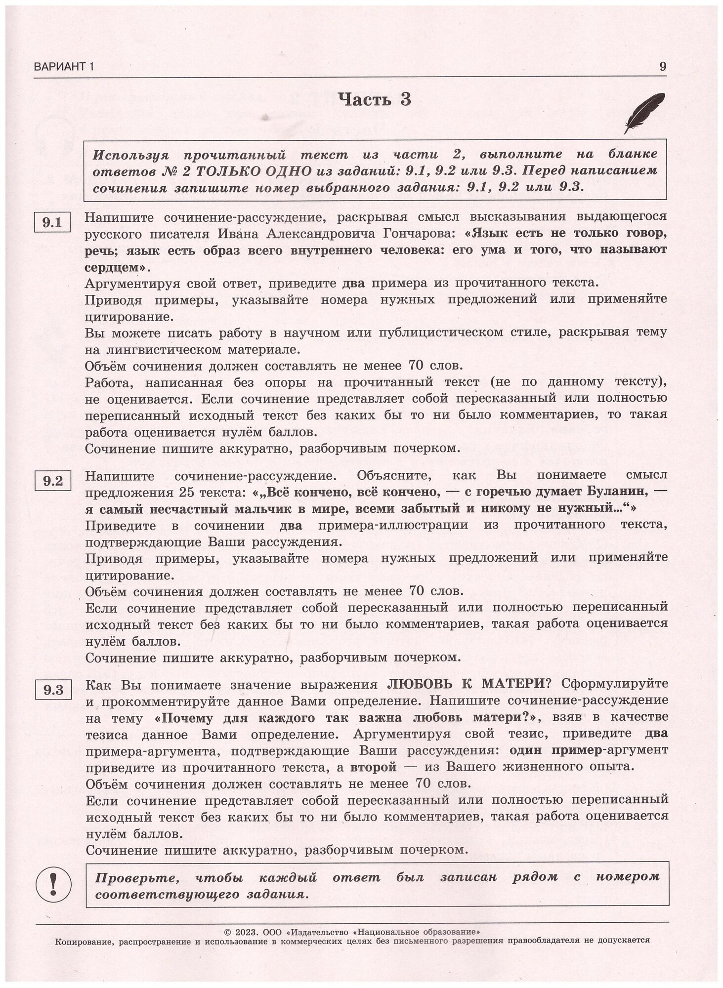 Выполнение заданий типовых экзаменационных вариантов предоставляет обучающимся возможность самостоятельно подготовиться к государственной итоговой аттестации в 9-м классе, а также объективно оценить уровень своей подготовки.