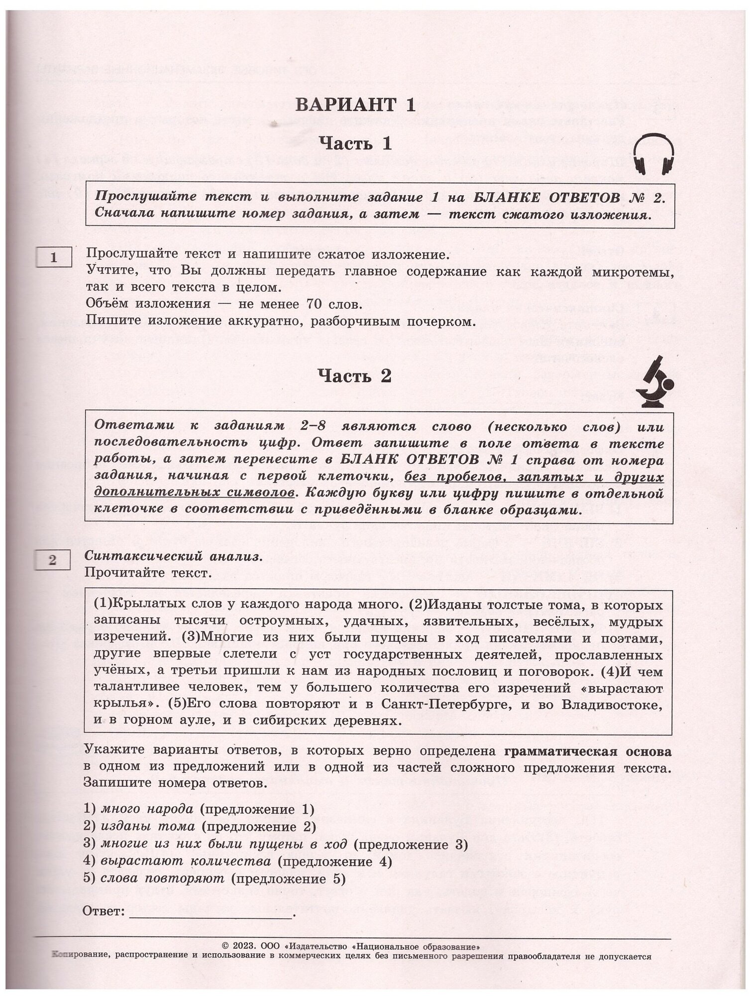 - 36 типовых экзаменационных вариантов, составленных в соответствии с проектом демоверсии КИМ ОГЭ по русскому языку 2023 года;