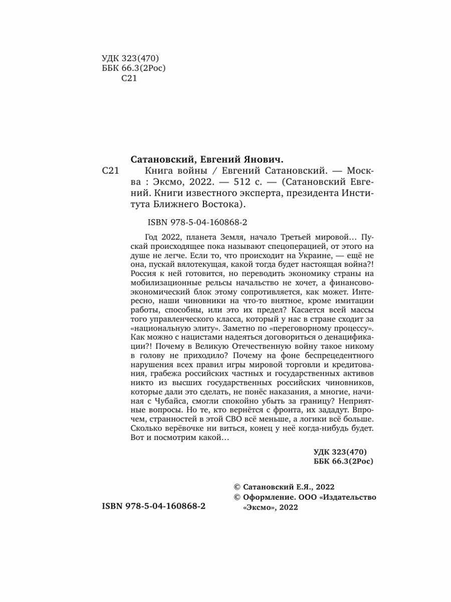 Книга: Книга войны (Сатановский Евгений Янович); Эксмо, 2022