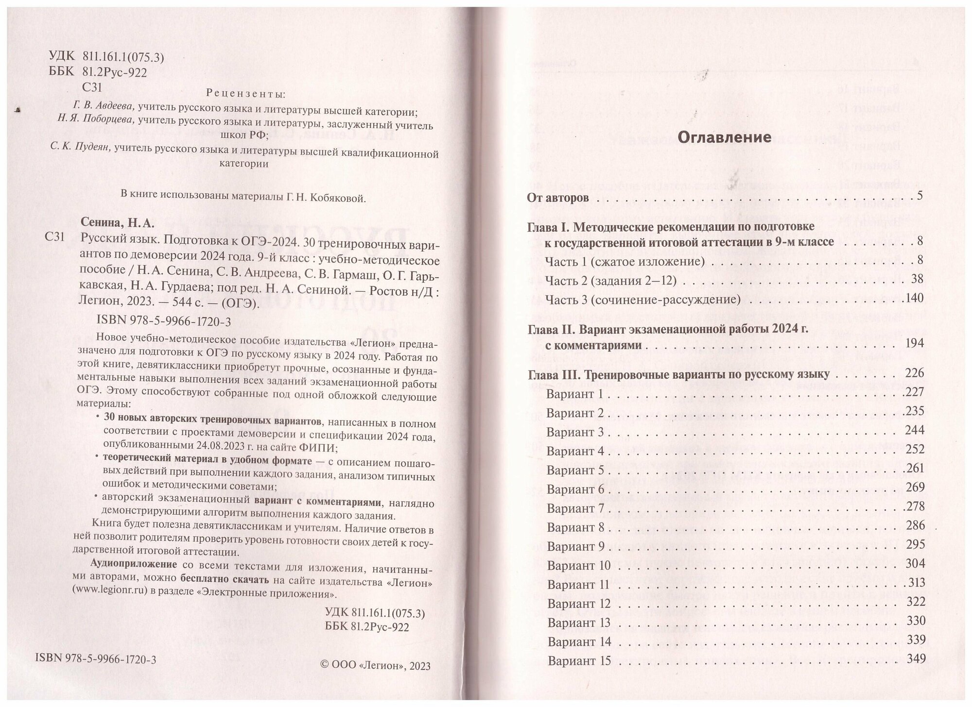 ОГЭ 2023 Русский язык. 9 класс. 30 тренировочных вариантов (Гармаш Светлана Васильевна (соавтор), Сенина Наталья Аркадьевна, Андреева Светлана Викторовна (соавтор)); Легион, 2022