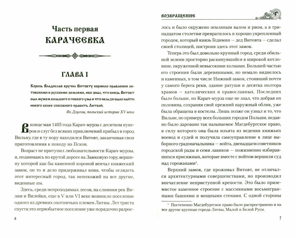 1405 год. Татарин Карач-мурза, сын русского князя, когда-то переселившегося в Орду, решает возвратиться на землю предков - в Карачевское княжество. Теперь эта часть русских земель находится под властью Великого княжества Литовского, но литовский князь Витовт милостив к Карач-мурзе и даже предлагает ему принять католичество, обещая взамен не просто дать землю в Карачевском княжестве, а сделать карачевским князем. И всё же Карач-мурза отказывается, выбирает веру отца - православие, хоть и понимает, что таким образом заметно усложняет себе жизнь.