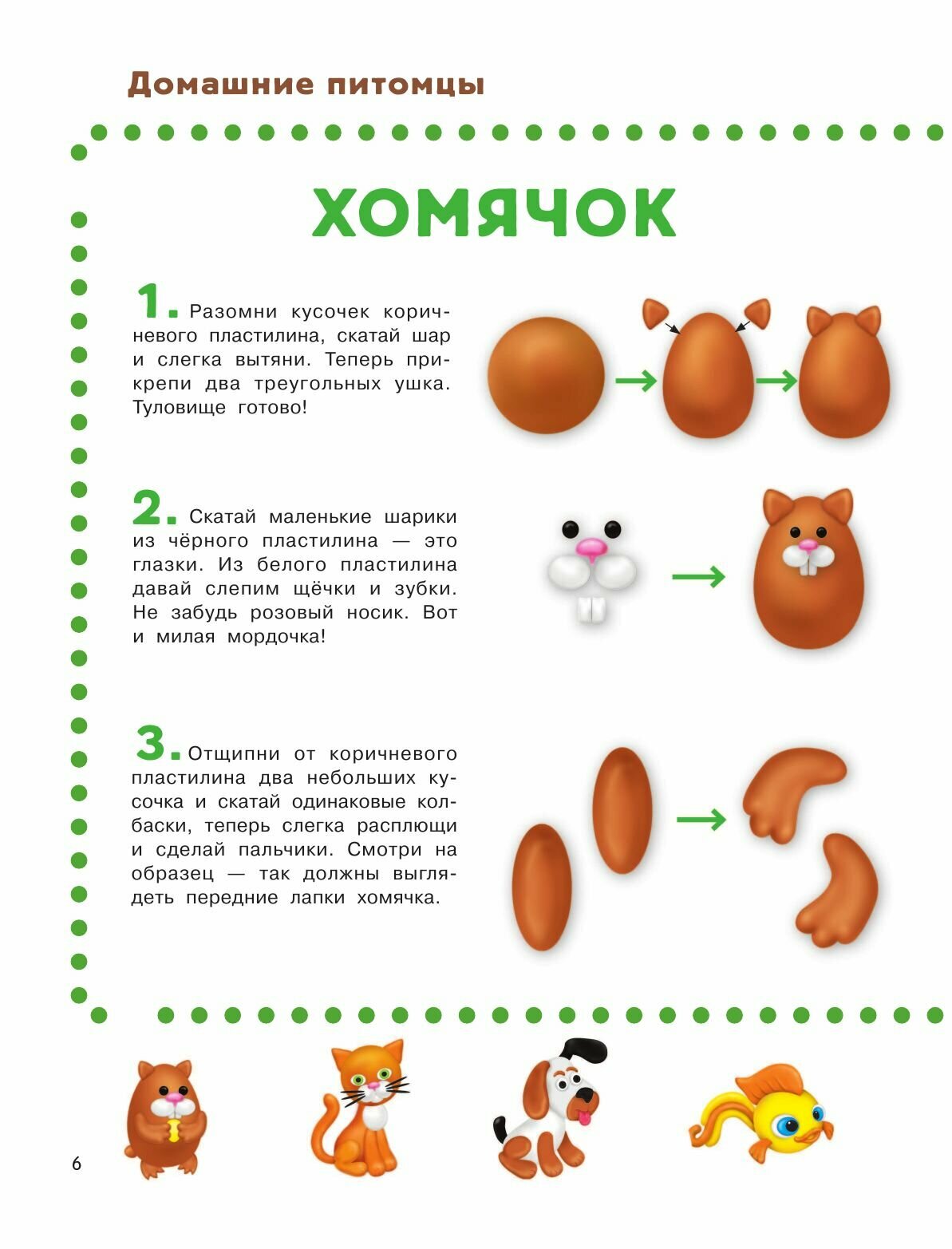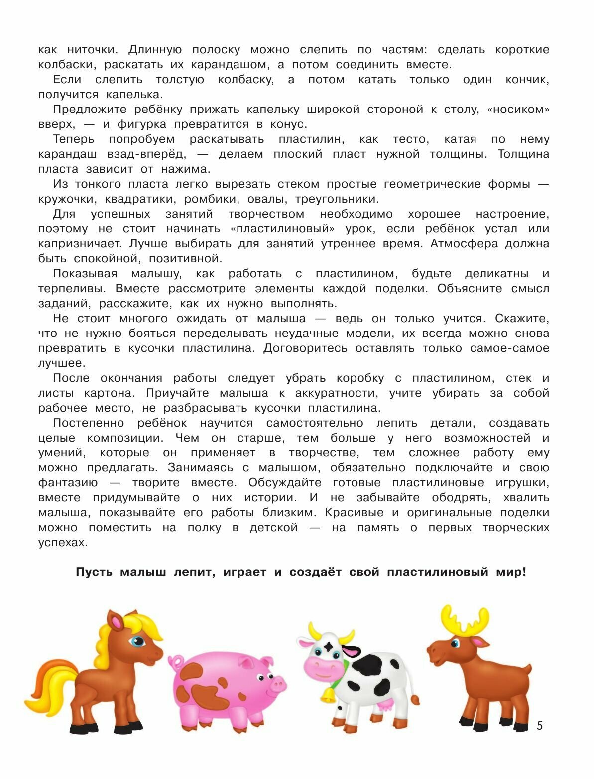 Очень хорошая книга с инструкциями для лепки из пластилина. Покупала брату( но сама тоже лепила разные фигурки по ней), ему понравилась книга. Инструкции в ней очень понятные и простые, самое главное, что есть картинки с примерами. На самом деле, лепить по ней можно не только из пластилина, но и из полимерной или обычной глины( также получаются красивые фигурки). Также огромный плюс, что инструкций по изготовлению фигурок много( все они разные и интересные). Советую к покупке, особенно для детей) -