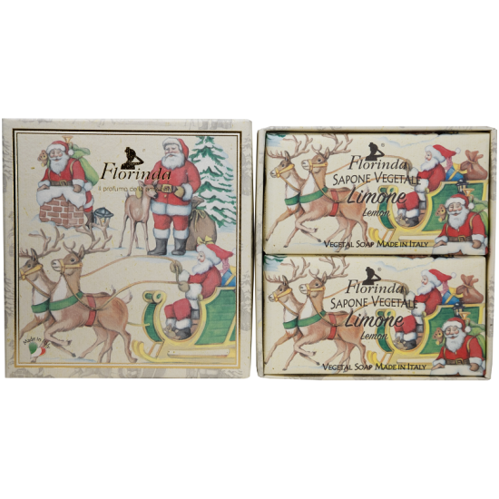 Набор мыла Florinda - гордость итальянского мыловарения, дошедшего до нас в классических рецептах и традиционных ароматических купажах. Мыло из коллекции "Счастливого рождества" изготовлено из безопасных и натуральных ингредиентов растительного происхождения, что обеспечивает его мягкость и нежную заботу о коже при использовании. Благодаря высокому содержанию в составе ароматической композиции, мыло Лимон обладает очень ярким цитрусовым ароматом. Оно стает чудесным призентом к Новогодним праздникам.