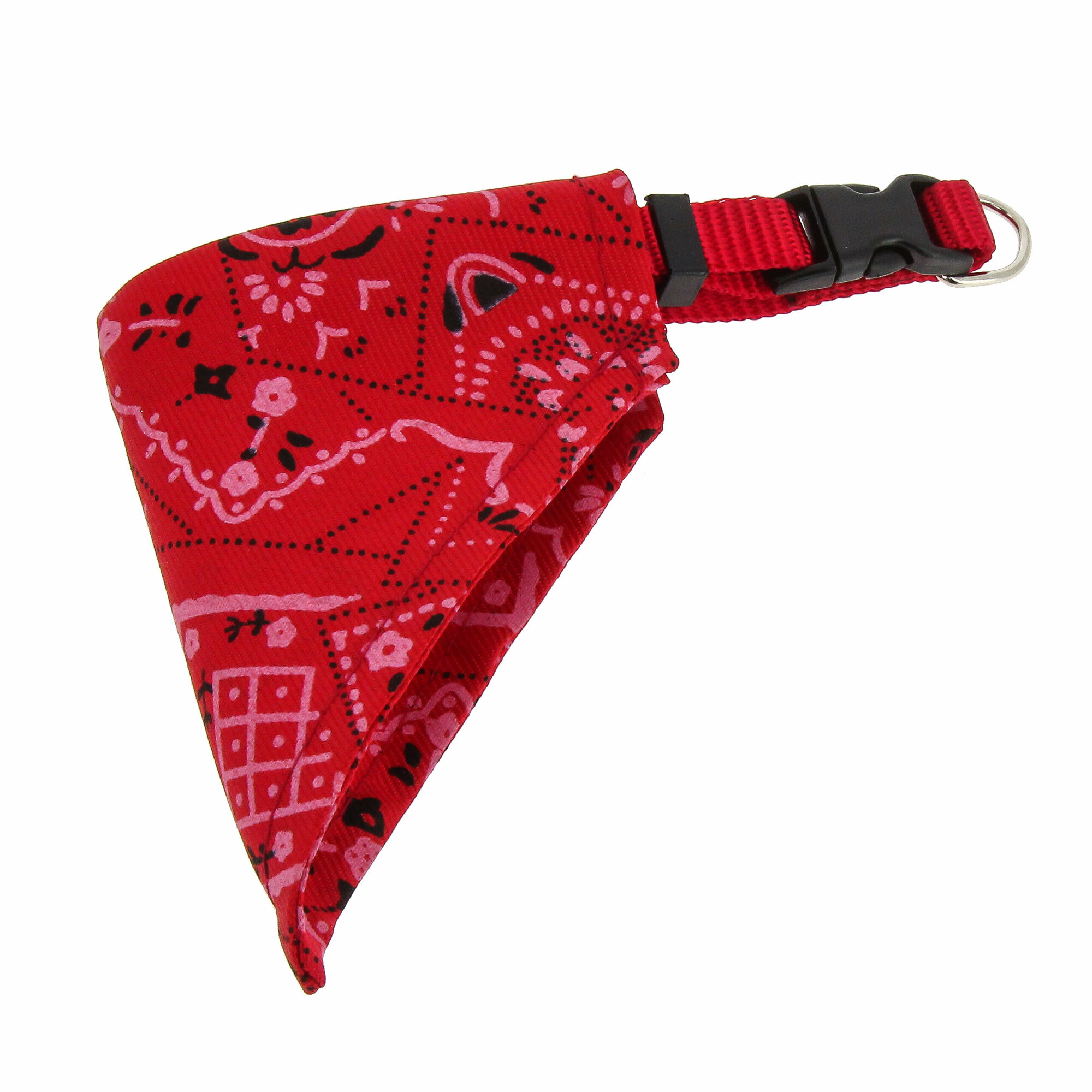 Ошейник изготовлен из прочной нейлоновой стропы шириной 10 мм. с использованием крепкой металлической фурнитуры.Рассчитан на обхват шеи питомца: 22-35 см, 25-40 см, 35-50 см. и 40-65 см.Этот оригинальный ошейник выполнен в виде косынки (банданы).Ошейник имеет:- пластиковую застёжку "фастекс";- металлическое полукольцо для пристёгивания к нему карабина от поводка;- пластиковую рамку для регулировки длины.Цвет: синий, красный.Цвет изделия на фотографии может отличаться от цвета фактического товара.