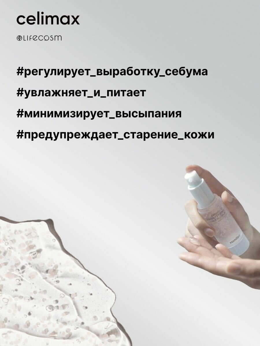Сыворотка препятствует появлению жирного блеска в течения дня и нормализует секрецию кожного сала. Средство увлажняет и тонизирует кожу, восстанавливает ее гидролипидный баланс. Сыворотка помогает коже дольше сохранять матовость, минимизирует количество черных точек и высыпаний, уменьшает видимость пор. Легкая гелевая текстура быстро впитывается, не оставляя на коже липких следов.