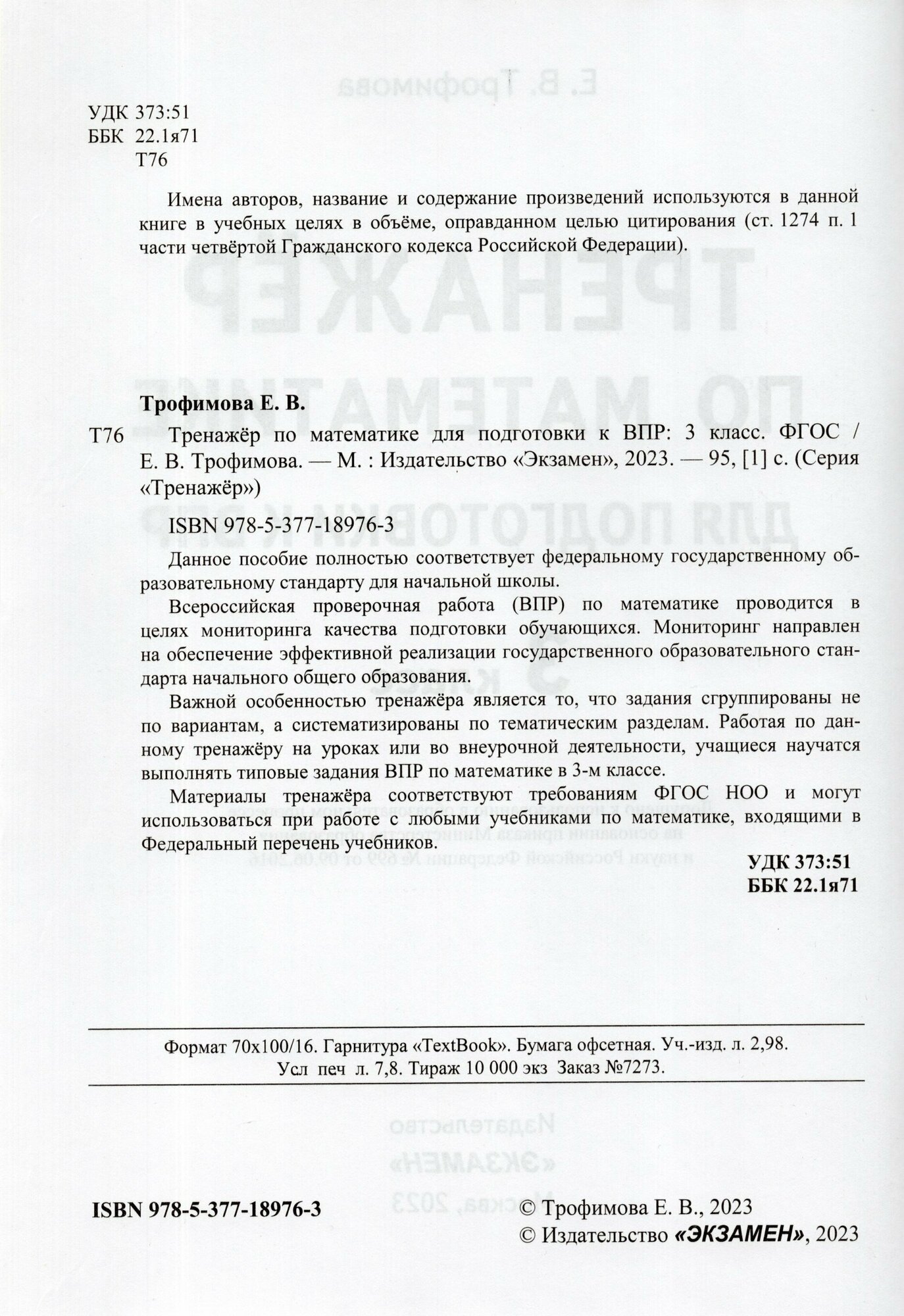 ВПР. Математика. 3 класс. Тренажер. ФГОС (Трофимова Елена Викторовна); Экзамен, 2023