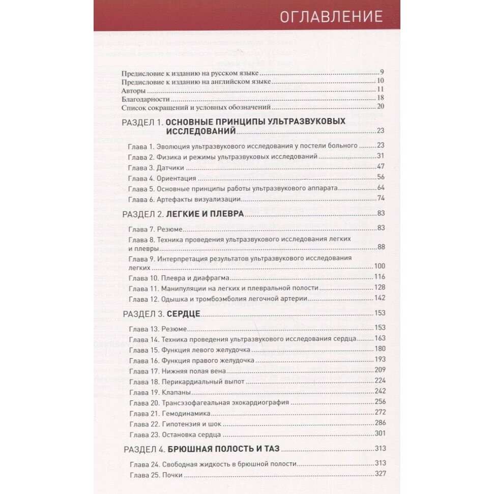 Содержание каждой главы стандартизировано и включает следующие разделы: основные положения, общие сведения, анатомия, регистрация и интерпретация изображений, тонкости и "ловушки", описание клинических случаев и контрольные вопросы. К каждому разделу подобрано большое количество клинических случаев, показывающих эффективность ультразвукового исследования у постели больного; их трактовки делают книгу незаменимой для врачей любых специальностей, оказывающих экстренную и неотложную помощь. Руководство включает также описание типичных ошибок при ультразвуковой диагностике в неотложных ситуациях.