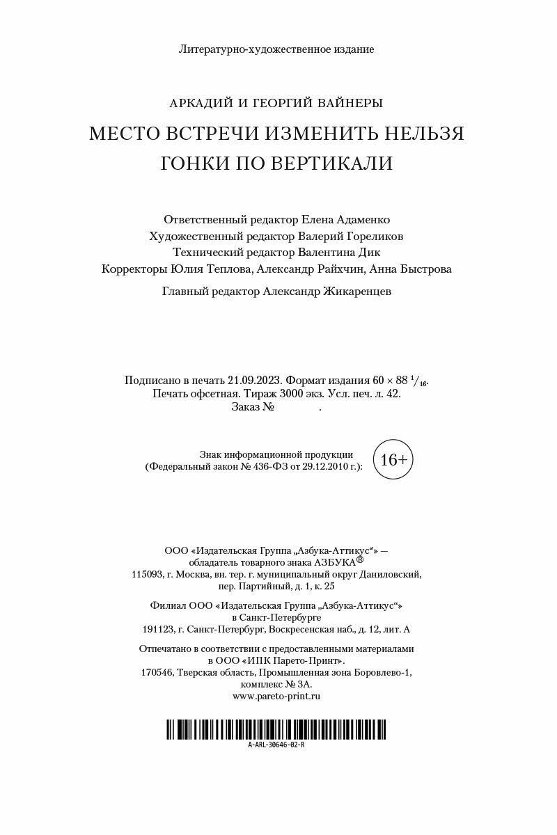 Место встречи изменить нельзя Гонки по вертикали (Вайнер Аркадий Алексанрович, Вайнер Георгий Александрович (соавтор)); Азбука, 2022