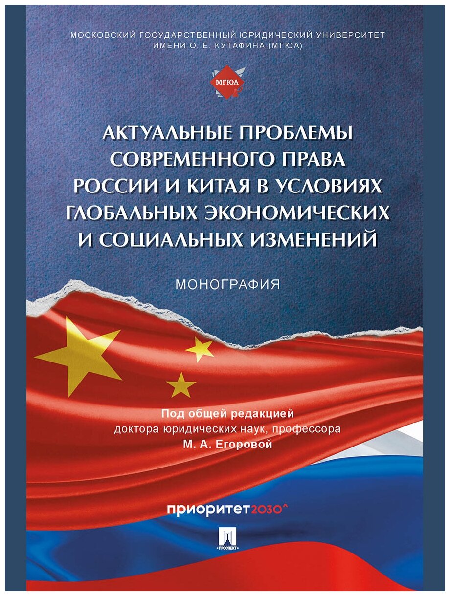 Актуальные проблемы современного права России и Китая в условиях глобальных экономических и социальных изменений Монография русский язык китайский язык (Егорова Мария Александровна, Алексеенко Александр Петрович, Базина Ольга Олеговна); Проспект, 2024
