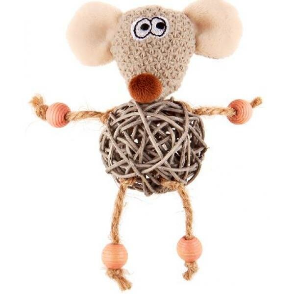 Игрушка для кошек "Мышка с плетеным мячиком" изготовлена из эко-материалов и дополнена колокольчиком. Материал: текстиль, веревки, ротанг.