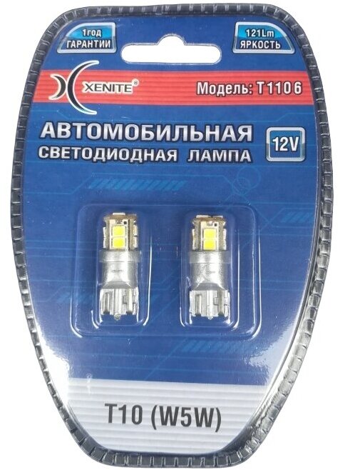 Светодиод 12V (номер габариты) (T10/W5W/W2195d) T1106 белый блистер 2шт Xenite (1009427)