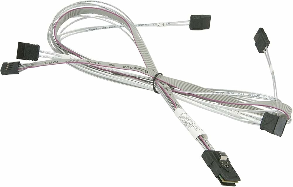 Кабель направленный - может использоваться только для подключения контроллера с разъёмом mini-SAS (SFF-8087) к SAS/SATA корзине или SAS/SATA объединительной панели с SATA разъёмами, а также к SATA-накопителям напрямую.