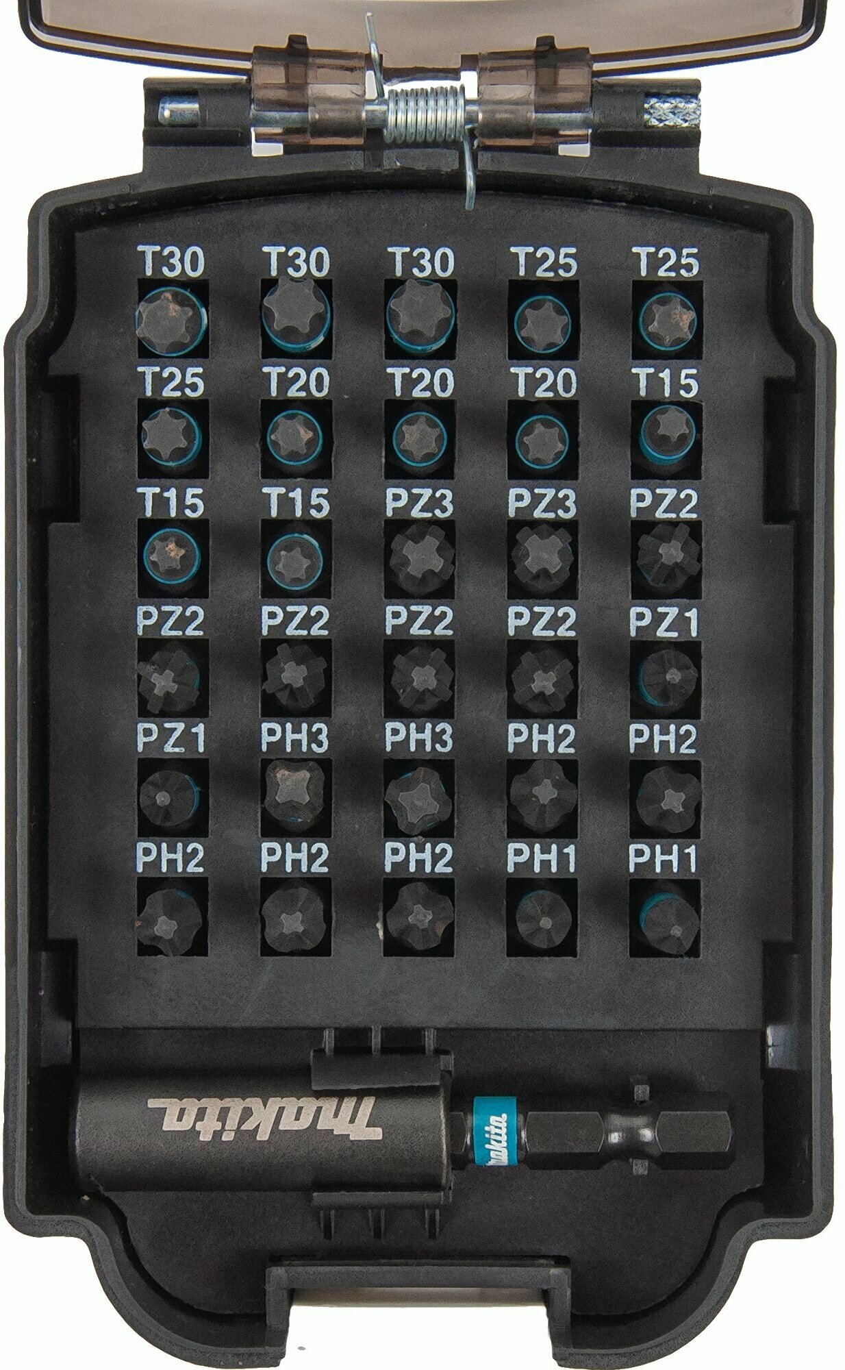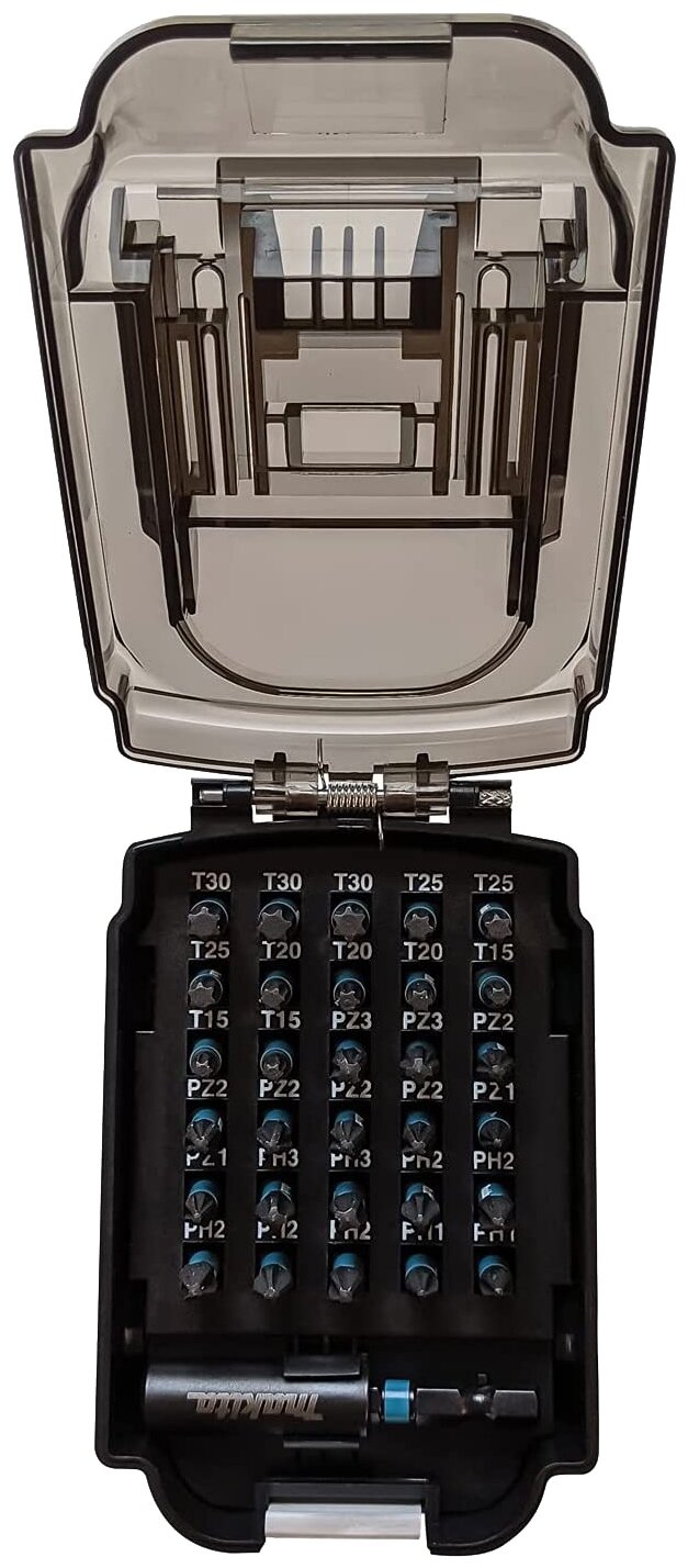 | Прочие особенности и свойства | Набор ударных бит Impact Black, 31 шт., E-03084, Makita подходит для различных типов винтов. Данный комплект включает в себя биты Phillips, Torx, Pozidriv, а также магнитный держатель. Биты Макита выполнены из высококачественных материалов и имеют длительный срок службы. Расходные материалы Макита - это высококачественные принадлежности для профессионального использования. Изготовленные из лучших материалов, они имеют долгий срок службы и оптимальное соотношение цена-качество. Биты упакованы в футляр формы батареи. , Длина бит 25 мм, Усиленный стержень для работы с ударными шуруповертами., Биты сделаны из высоколегированной специальной стали S2, что обеспечивает долгий срок службы., В комплект входит магнитный держатель для бит., Кейс в форме аккумулятора обеспечивает удобный доступ к насадкам. |