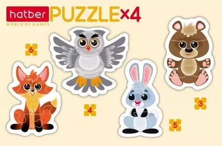 Puzzle-3 4 5 6 фигурные 4 в 1 Лесные звери Хатбер