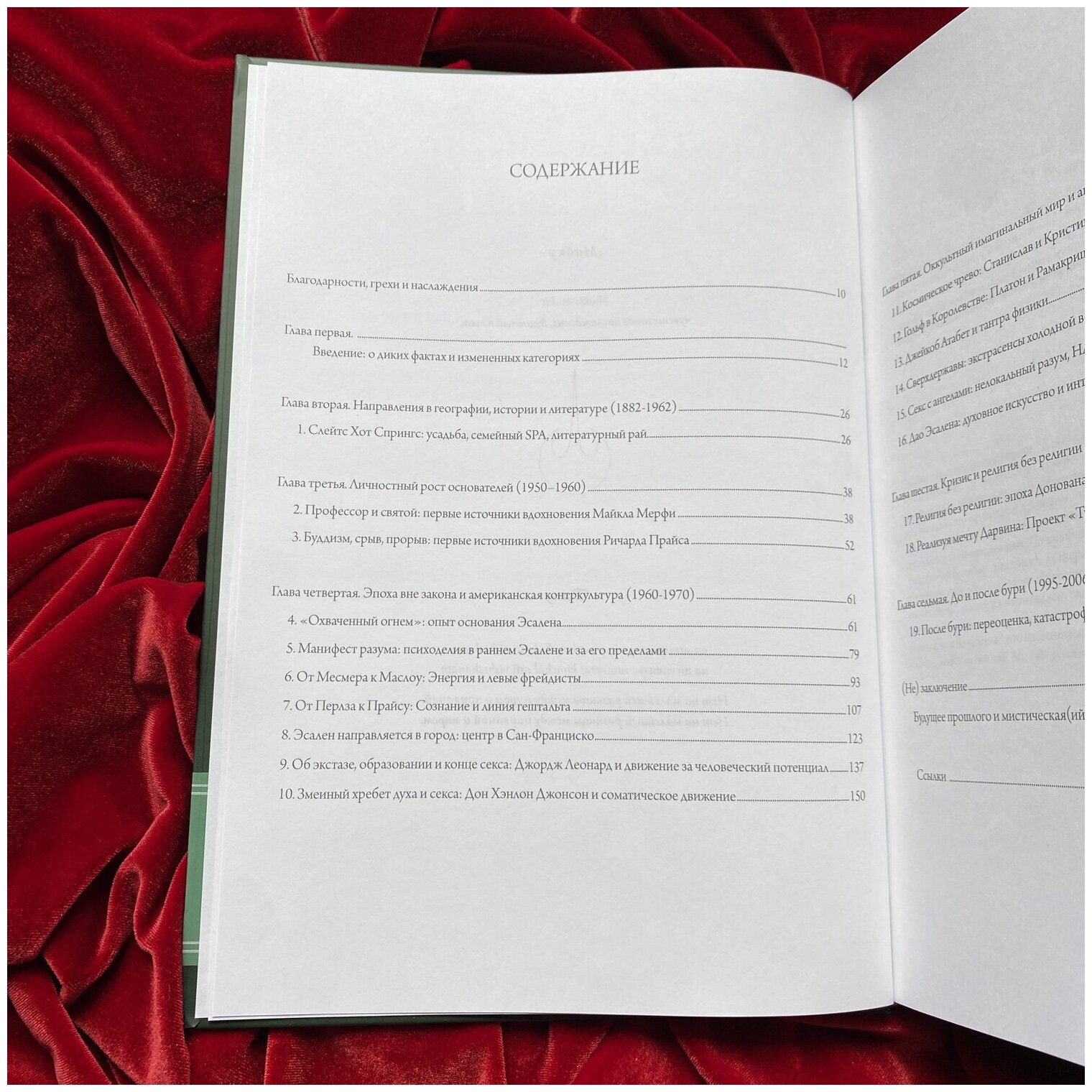 Книга представляет собой увлекательное повествование об истории Эсалена, института, который долгое время был мировым лидером в области альтернативного и экспериментального образования, удивительного детища Майкла Мерфи и Ричарда Прайса, взращенного на лекциях блестящих исследователей сравнительного религиоведения и впитавшее литературные и мифологические пристрастия поколения битников. Автор с захватывающими подробностями рассказывает о том, как два мыслителя-индивидуалиста объединяли духовные откровения Востока с научным прогрессом Запада в стремлении создать проект, отвергающий догмы традиционной религии, где мир природы столь же важен, как и духовный, наука и вера не только смешались, но и стали верными союзниками, где просветление тела ведет к полному раскрытию нашего человеческого потенциала, а сама реальность перетекает в головокружительный оккультный роман. В книге приводятся психологические техники и практики, которые могут быть полезны для психолога или простого духовного искателя.