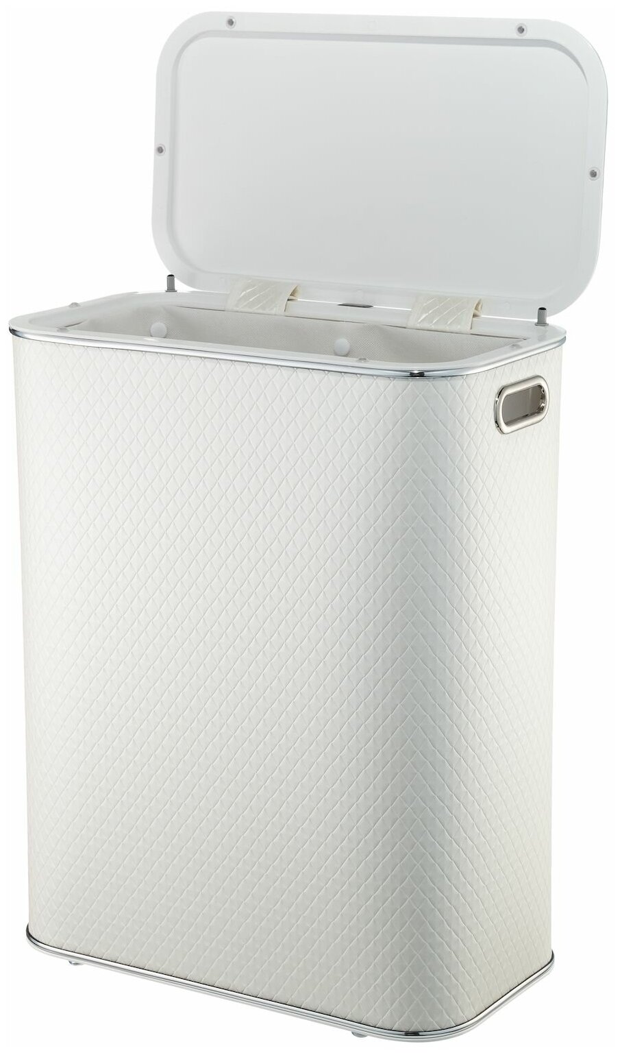Можно использовать как пуфик или стульчик. Выдерживает вес до 100 кг.Плавное закрывание крышки.Внутри корзин съемный мешок, который легко стирается.Дополнительная вентиляции за счет отверстий ручек и вентиляционной решетки на днище корзины.Материал Экокожа долговечен, не имеет запаха, легок в уходеСобственное производство, со строжайшим контролем качества!Гарантия производителя 2 года.