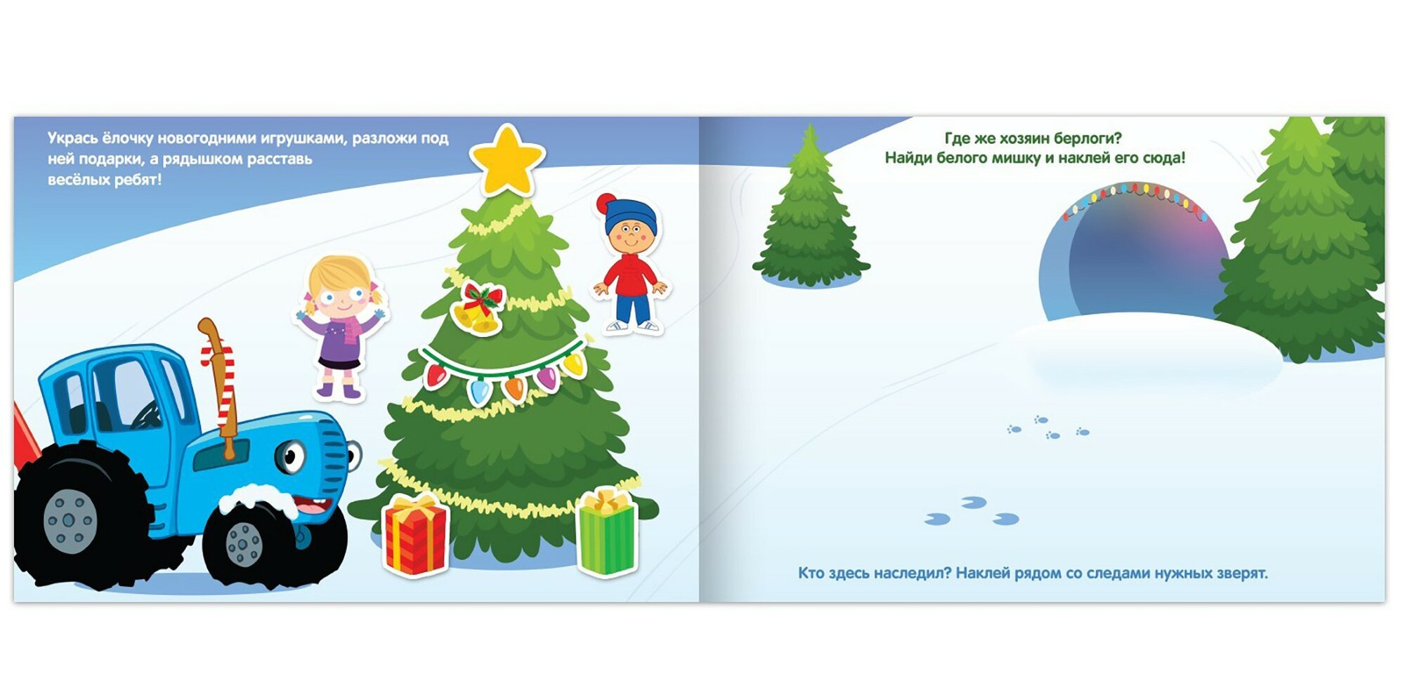 С набором ярких наклеек "Новогодние приключения с Синим трактором" встречать праздники ребёнку будет вдвойне весело. Ведь малыш подружится с весёлыми героями любимого мультфильма!