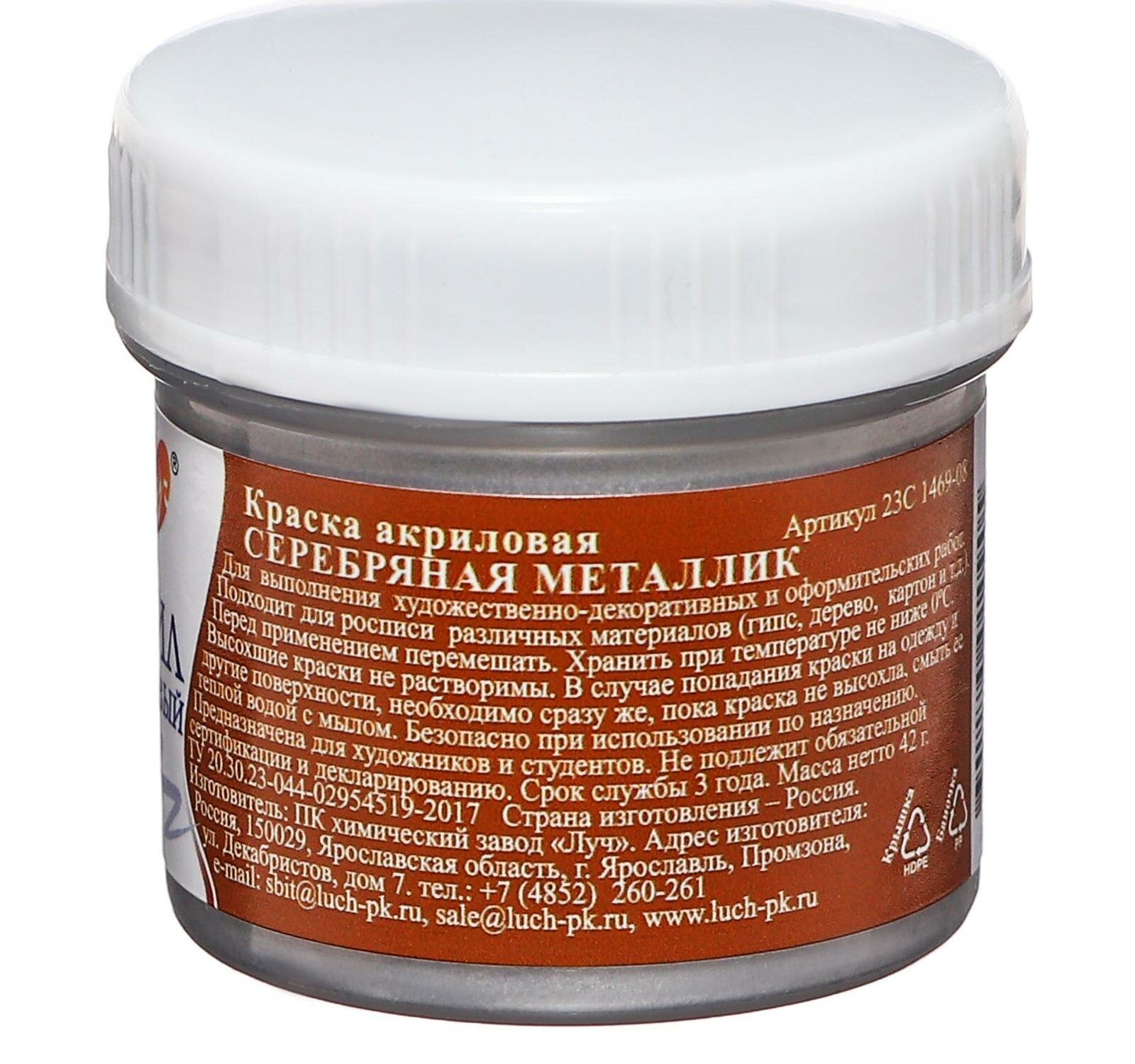 Краска акриловая металлик медная 40 мл. ЛУЧ акрил 40 мл медная