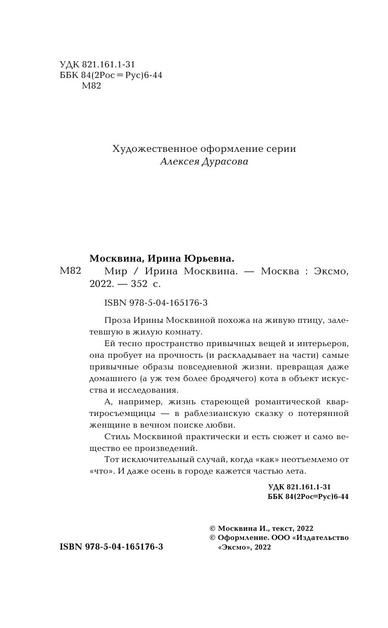 Книга: Мир (Москвина Ирина Юрьевна); ООО "Издательство "Эксмо", 2022