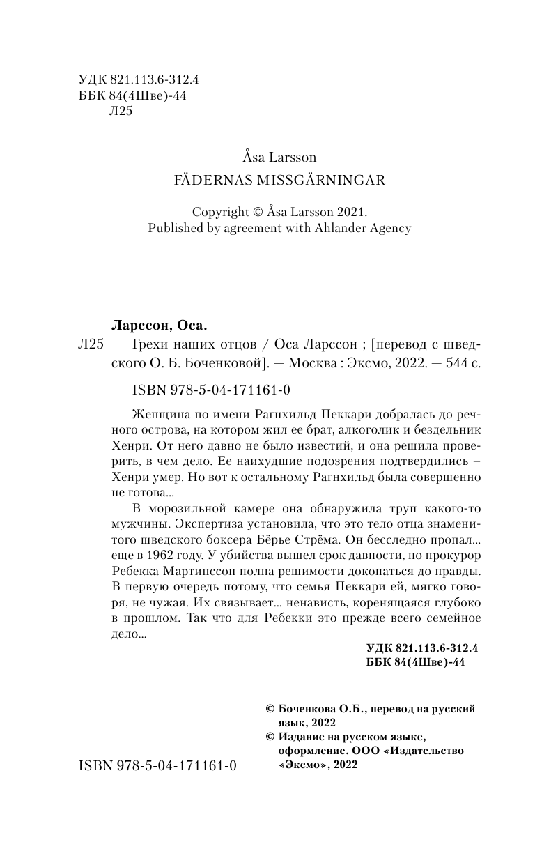 Книга: Грехи наших отцов (Ларссон Оса); ООО "Издательство "Эксмо", 2022