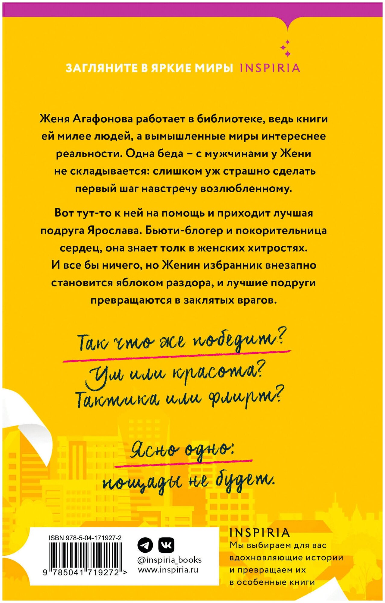 Женя Агафонова работает в библиотеке, ведь книги ей милее людей, а вымышленные миры интереснее реальности. Одна беда - с мужчинами у Жени не складывается: слишком уж страшно сделать первый шаг навстречу возлюбленному. Вот тут-то к ней на помощь и приходит лучшая подруга Ярослава. Бьюти-блогер и покорительница сердец, она знает толк в женских хитростях. И все бы ничего, но Женин избранник внезапно становится яблоком раздора, и лучшие подруги превращаются в заклятых врагов. Так что же победит: ум или красота? Тактика или флирт? Ясно одно: пощады не будет.