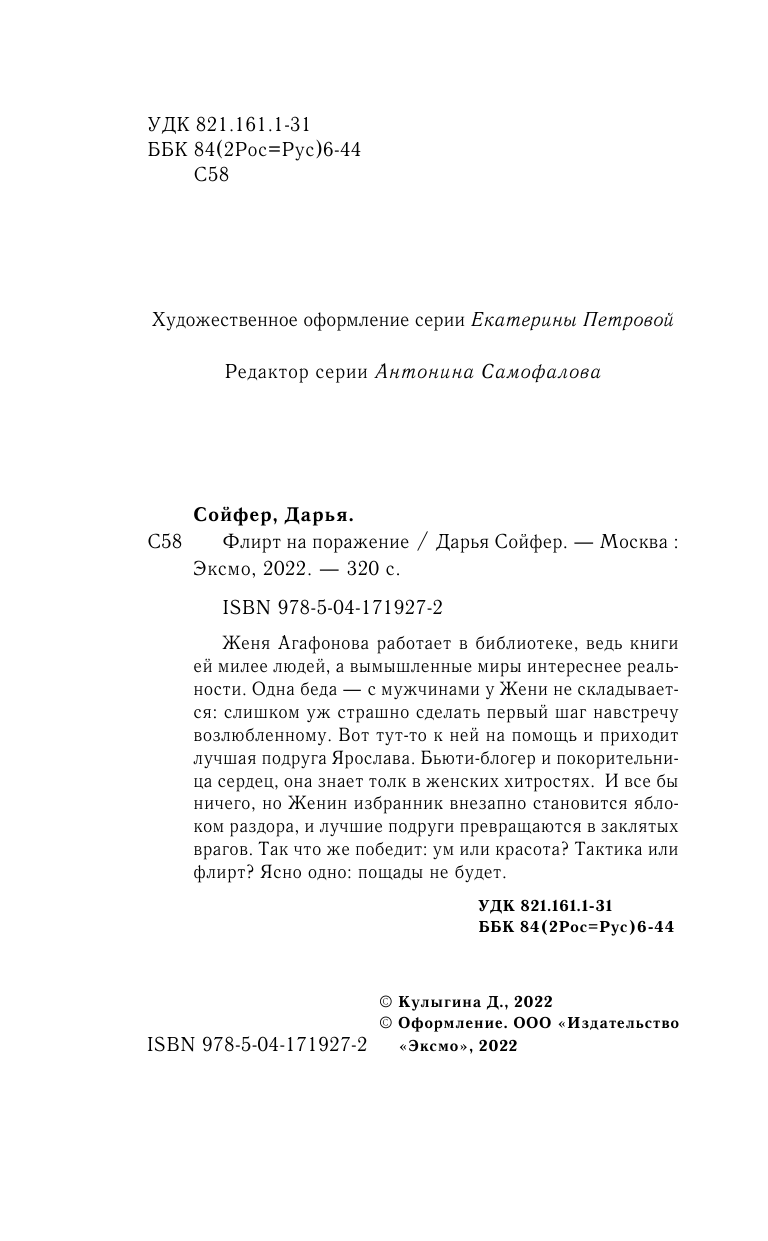 Книга: Флирт на поражение (Дарья Сойфер); Эксмо, Inspiria, Редакция 1, 2022