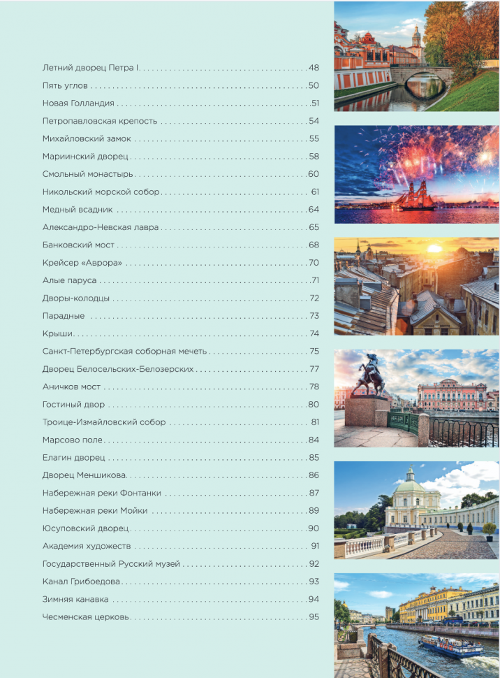 На страницах книги вы не только найдете знаковые и любимые достопримечательности, но и узнаете о потаенных уголках, где не так часто можно увидеть туристов. Вы побываете на Стрелке Васильевского острова и прогуляетесь по Невскому проспекту, узнаете много нового про Зимний дворец и Дворцовую площадь, посетите Кунсткамеру и крейсер «Аврора». Красочные фотографии, интересные факты, исторические справки и увлекательные тексты о самых красивых местах Северной Венеции — все это под одной обложкой.