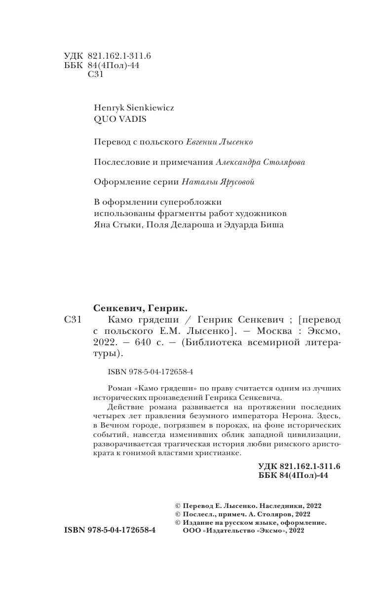 Книга: Камо грядеши (Генрик Сенкевич); Эксмо, Редакция 1, 2022