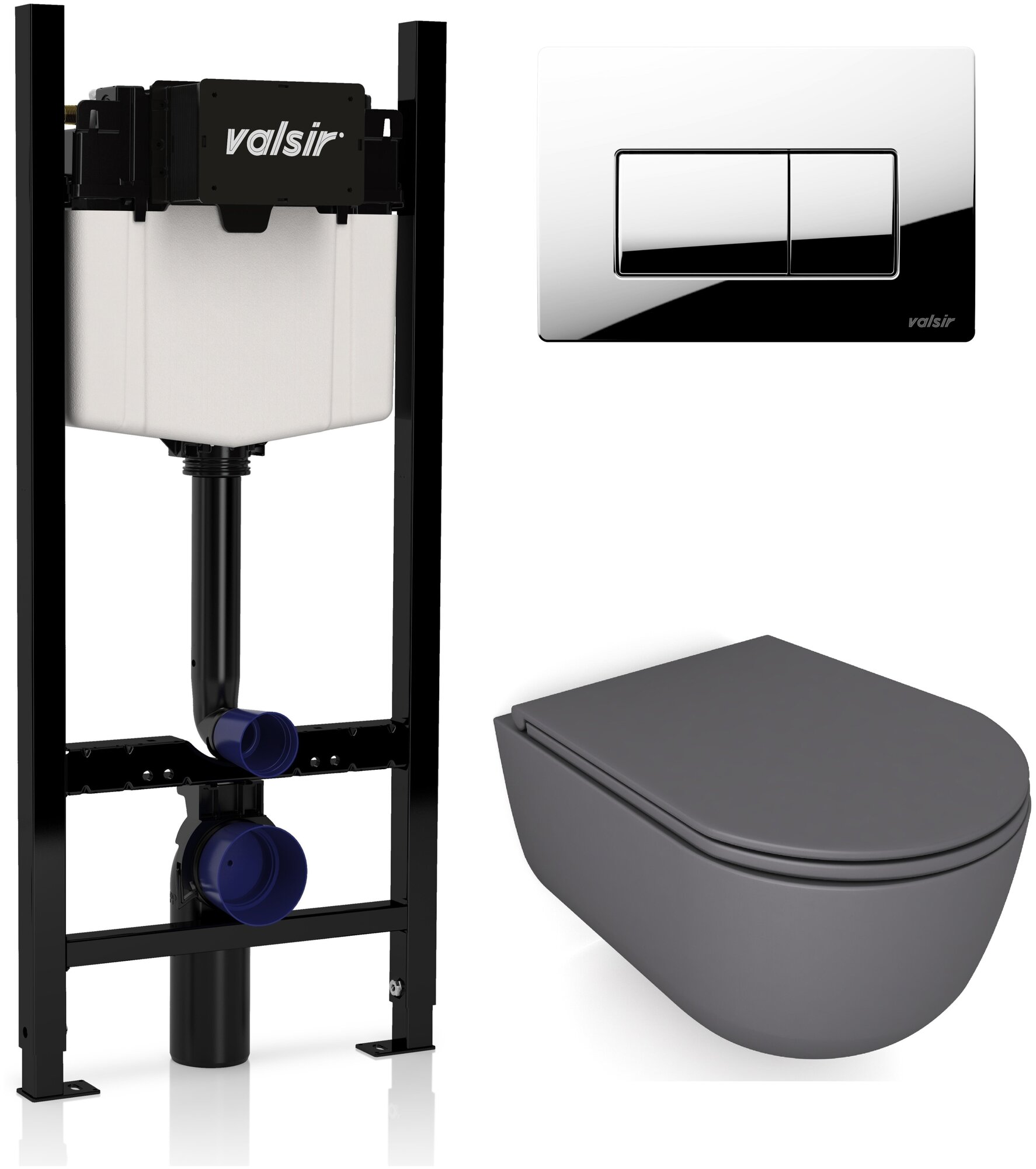 Комплект унитаза с инсталляцией Valsir Dream KIT VSCR 7334GM Slim P1 с сиденьем Микролифт и клавишей смыва Хром глянцевый