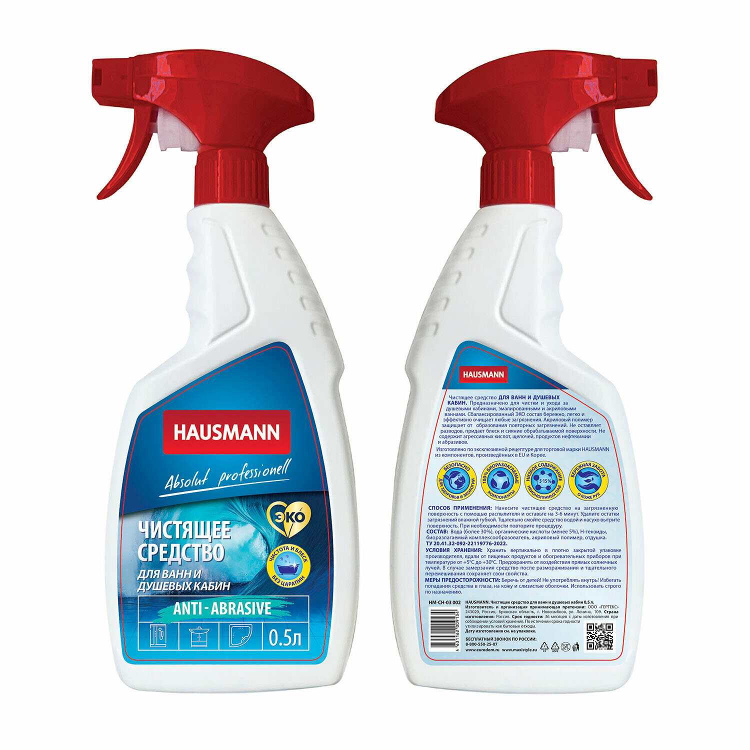 Чистящее средство Hausmann для ванн и душевых кабин 500мл (HM-CH-03 002)