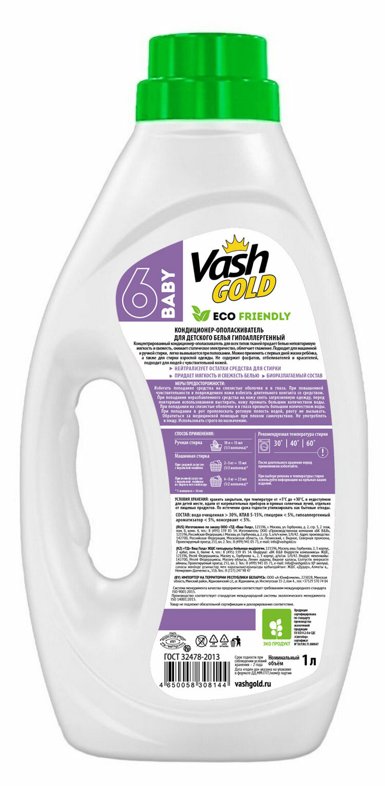 кондиционер для белья VASH GOLD Eco Friendly Baby 1л концентрат (308144)