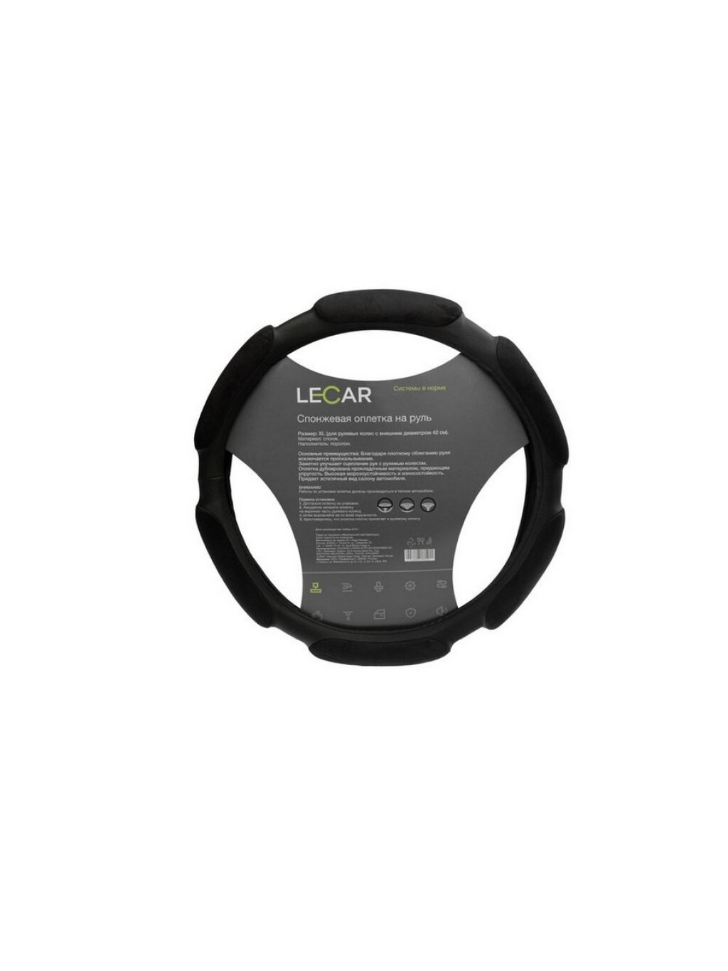Оплетка на руль LECAR М (38 см) 6 подушечек черный спонж (LECAR000025208)