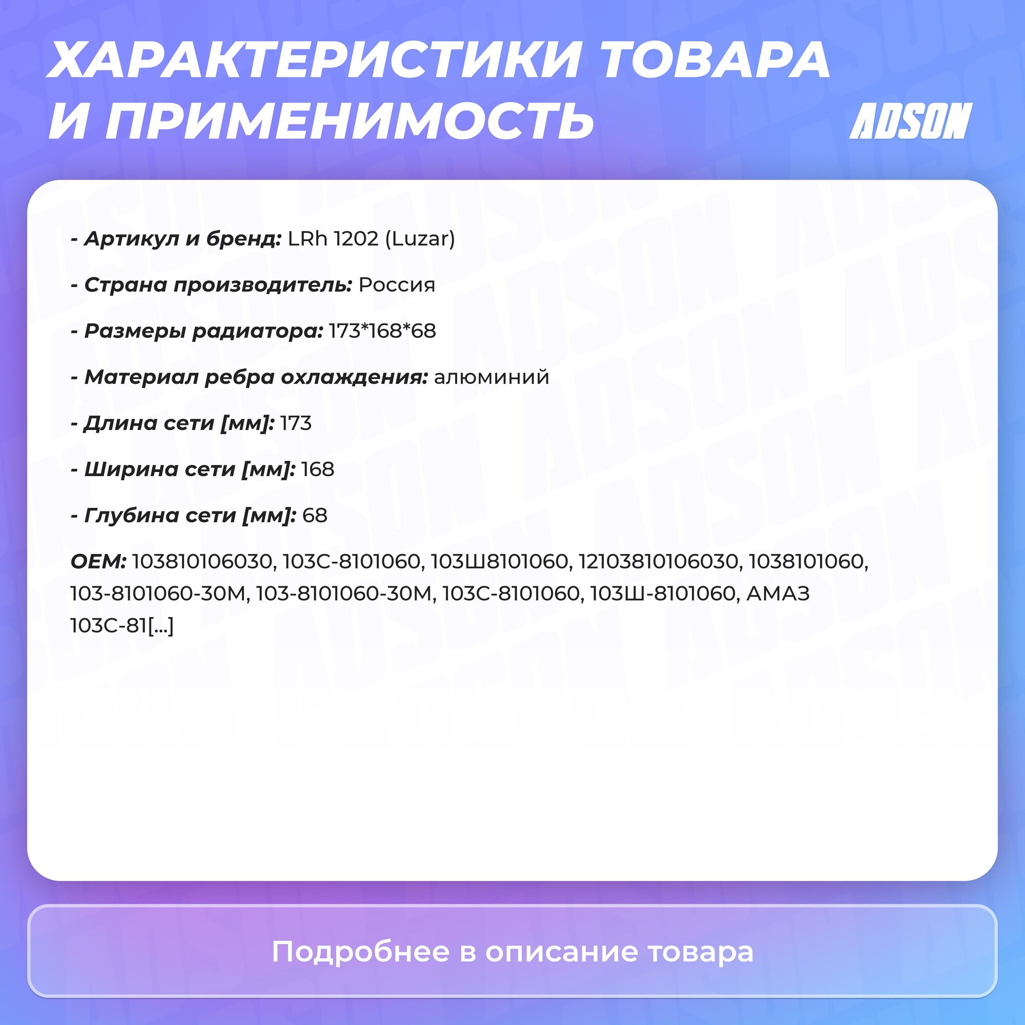 Радиатор отопителя (салонного) для автомобилей МАЗ 103/105 LUZAR (LRh 1202)