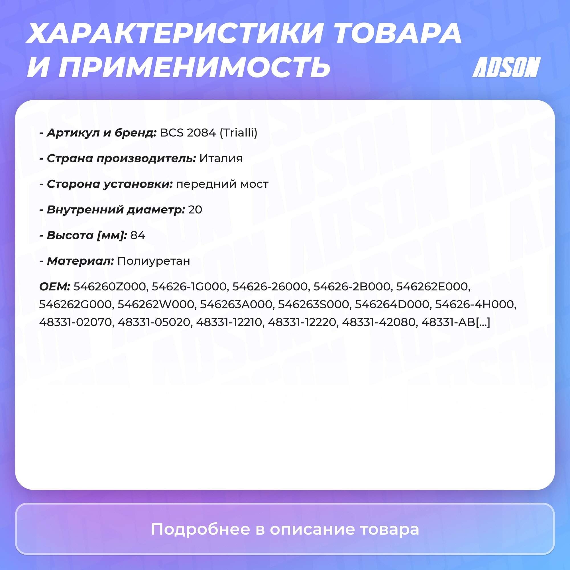 Внимание ! Цена указывается за 1 единицу товара!Вы Смотрите :Номер товара : BCS2084 Производитель : TRIALLI Название товара : Буфер (отбойник) 1 шт.+кожух 1 шт. (универс. кмпл. d20/h84) полиуретан (BCS 2084) Доступно для заказа : 0 Минимальное количество для заказа : 1 - заказывать кратно данному числу !Внимание!Делаем отправку заказа максимум через 2 дня после заказа, в зависимости от дня недели.Цена указана за 1шт, если указывается кол-во в лоте 10, то нужно заказывать 10шт, по 1шт данный товар не отправляемНапример:Cвечи продаются по 4шт(6,8,12) минимум и кратно 4шт(6,8,12)Втулки стабилизатора (которые одинаковые) по 2шт минимум и кратно 2шт, за исключением когда втулка идет на одну из сторон, то есть правая или левая!Пружины продаются по 2шт!