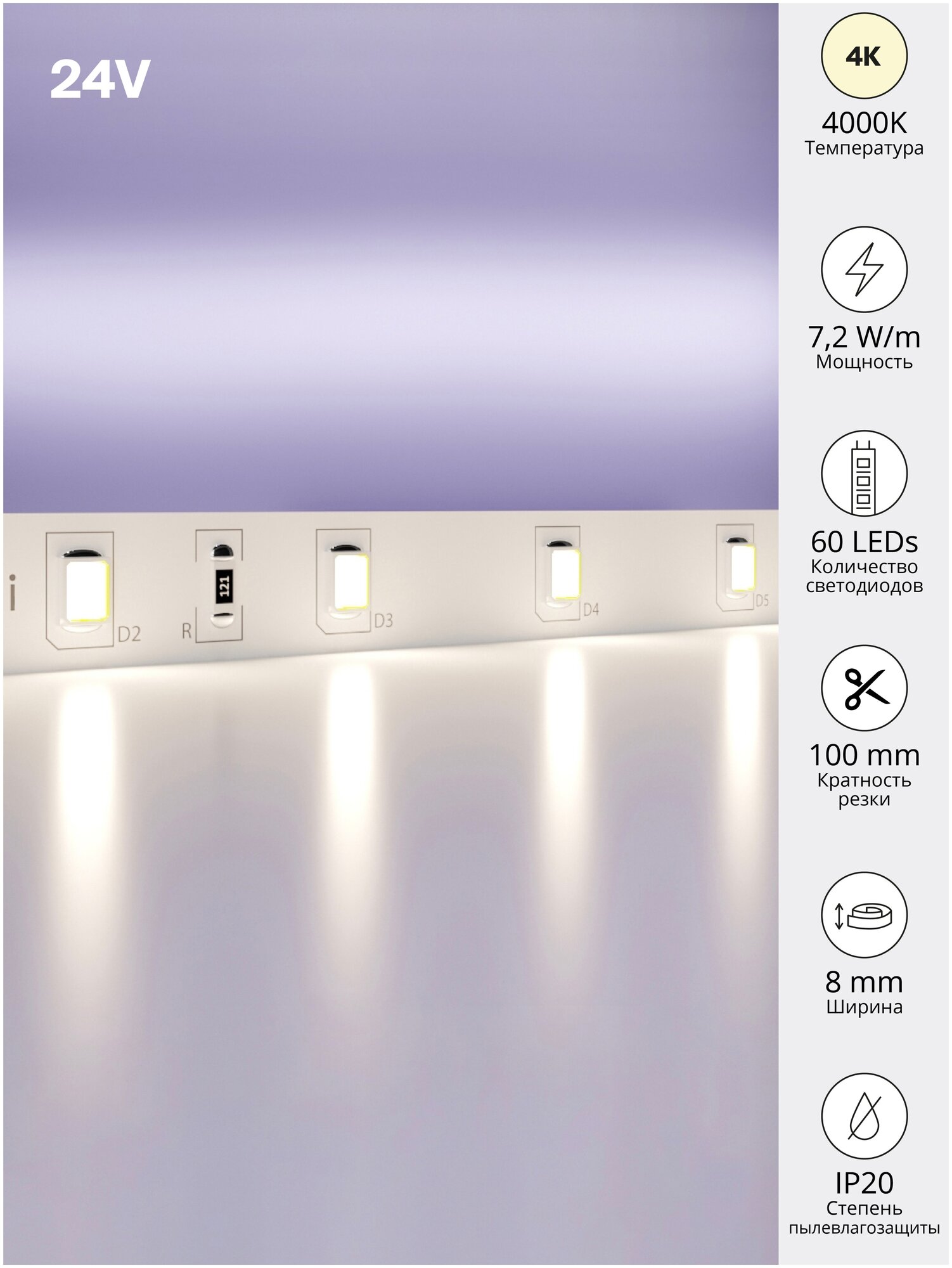 5м. Светодиодная лента белого цвета 4000К 72W 24V 60LED IP20 Led strip 20014 Maytoni