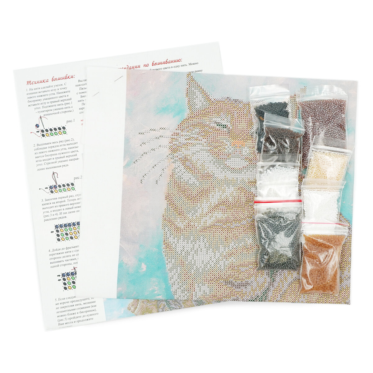 В наборе: смесовая натуральная ткань с нанесенным рисунком, бисер Чехия, бисерная игла, инструкция.
