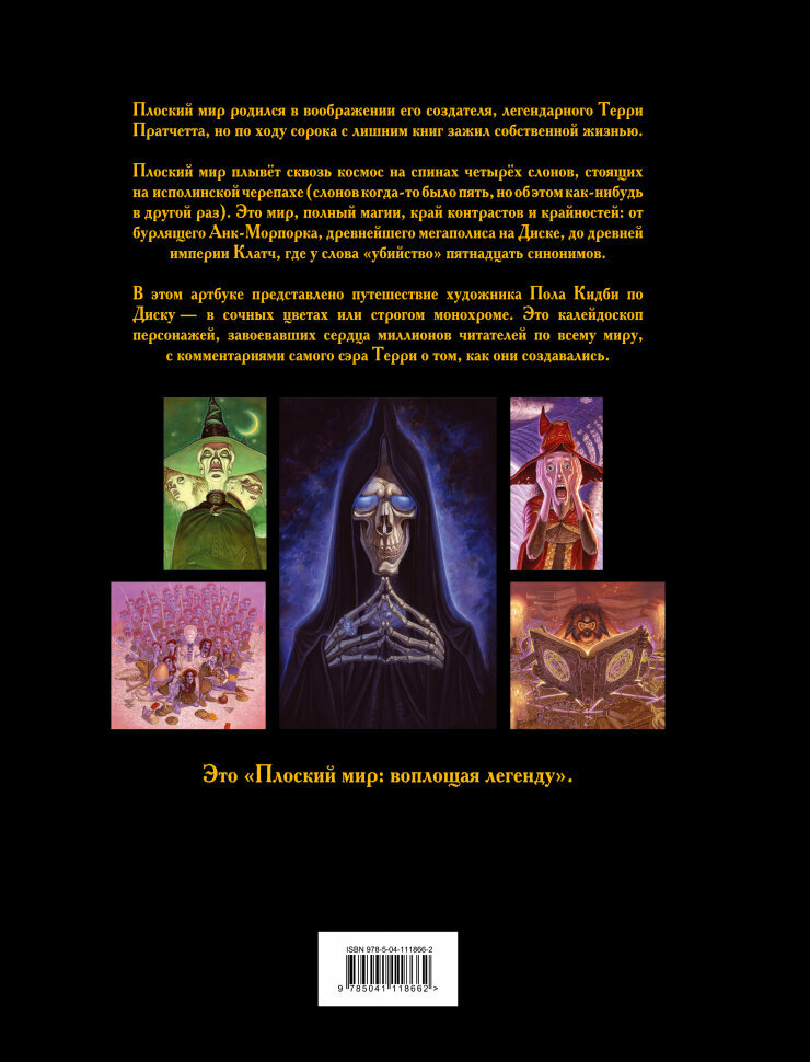 Роскошный подарок для всех ценителей творчества сэра Терри Пратчетта! Эта книга не просто альбом картин Пола Кидби, но своеобразный справочник по созданию Плоского Мира прямиком от создателя. Как всегда остроумно, Прачтетт рассказывает интересные факты о главных персонажах цикла, о их реальных прототипах. Увеличенный формат и качественная печать создают ощущение настоящего волшебства, погружения в каждую картину. Плоский Мир оживает!