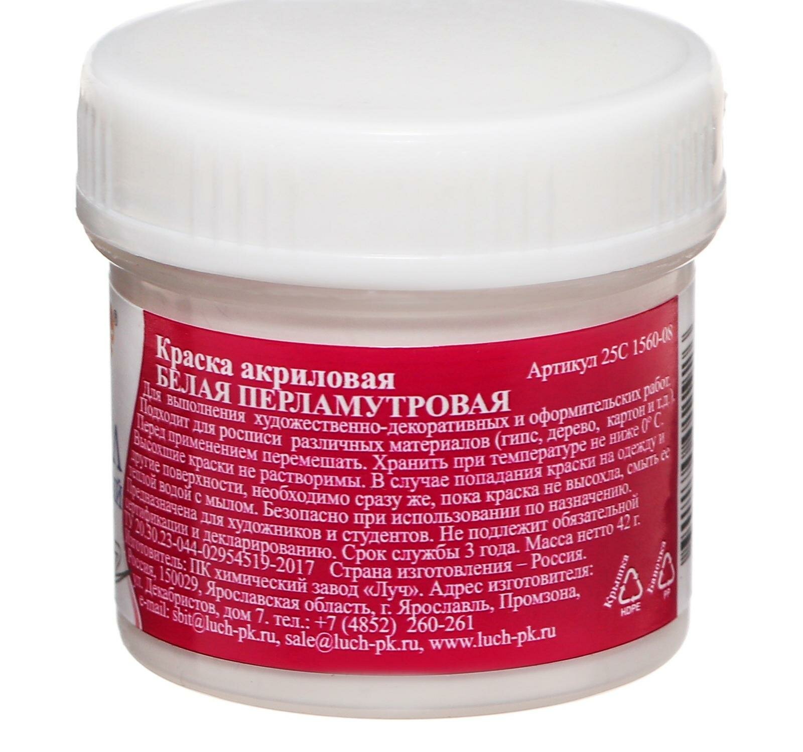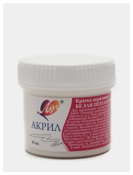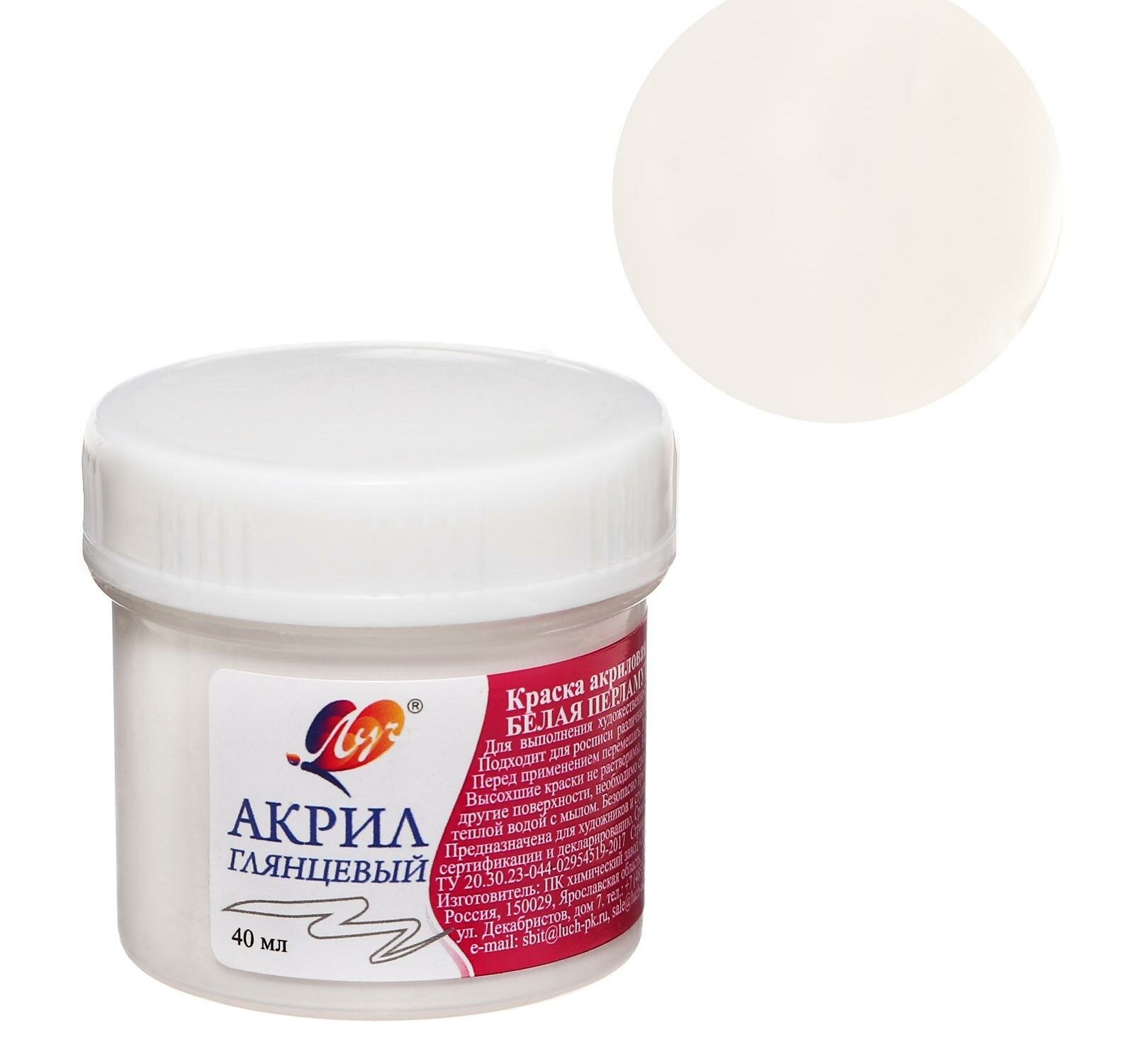 Краска акриловая перламутровая белая 40 мл ЛУЧ