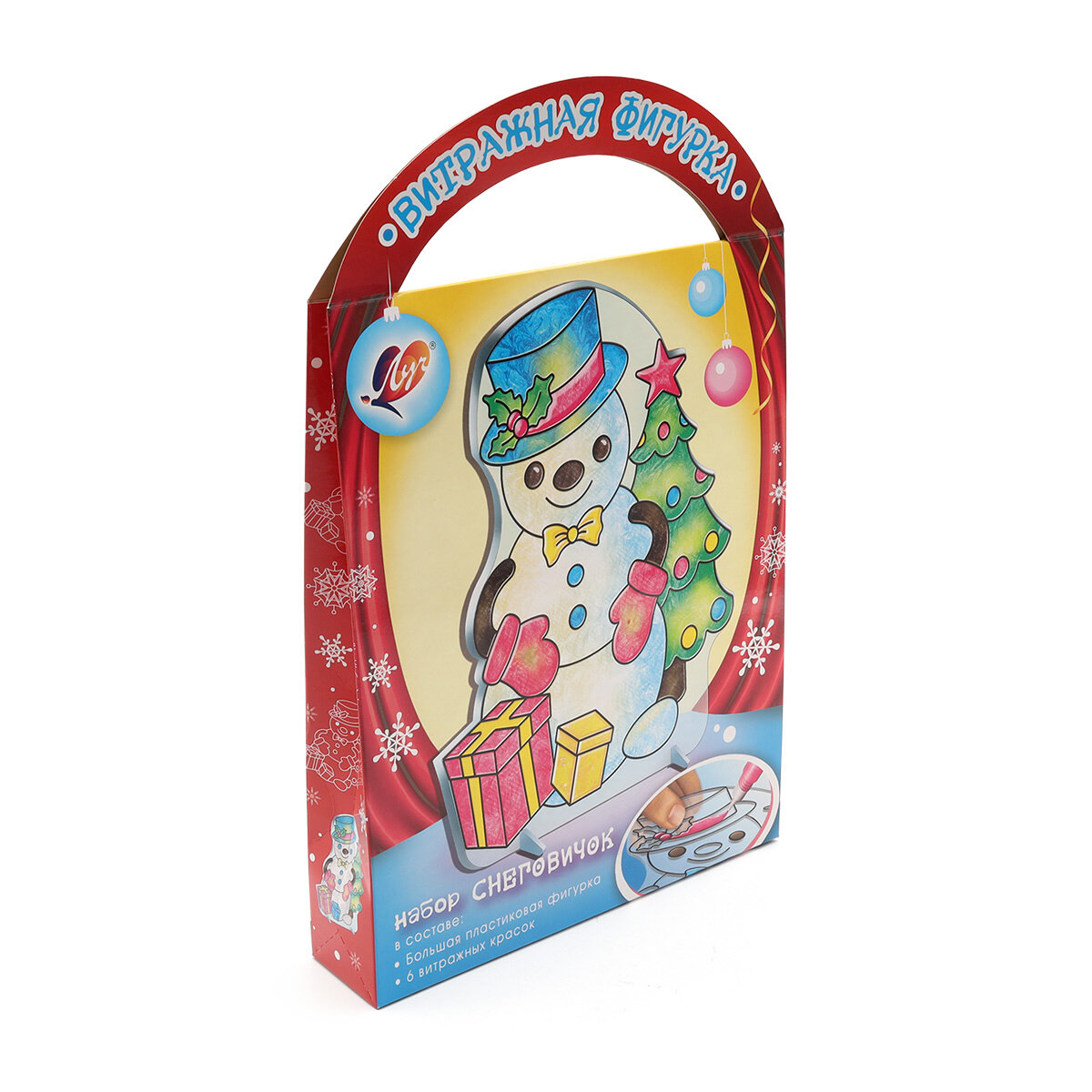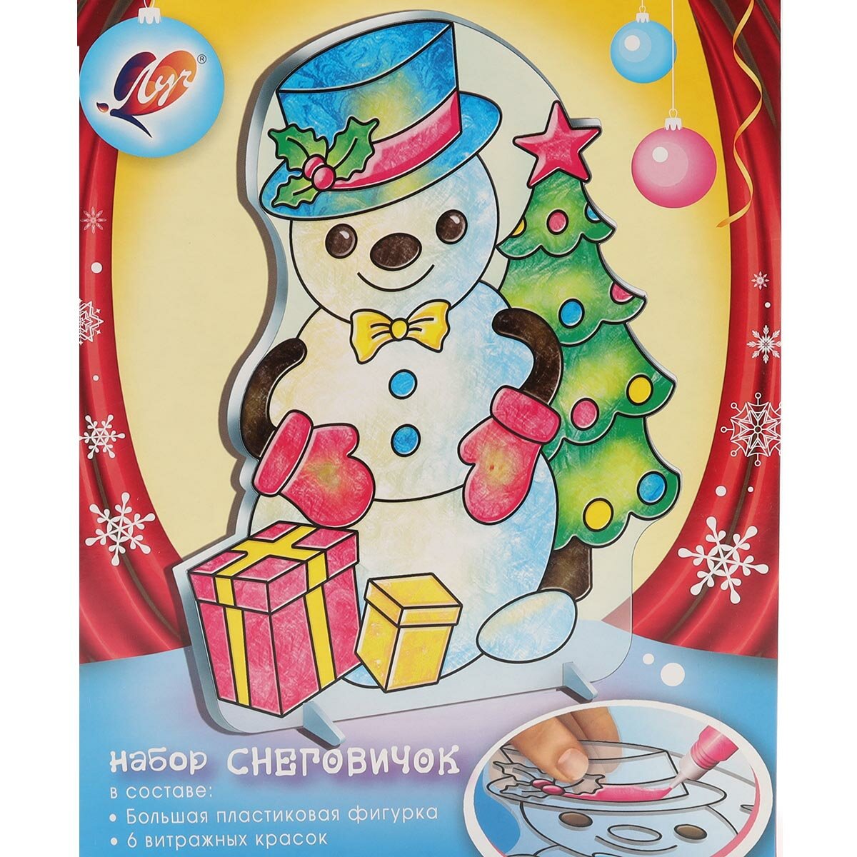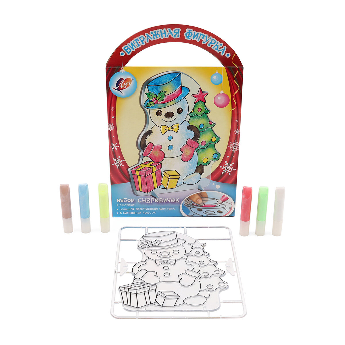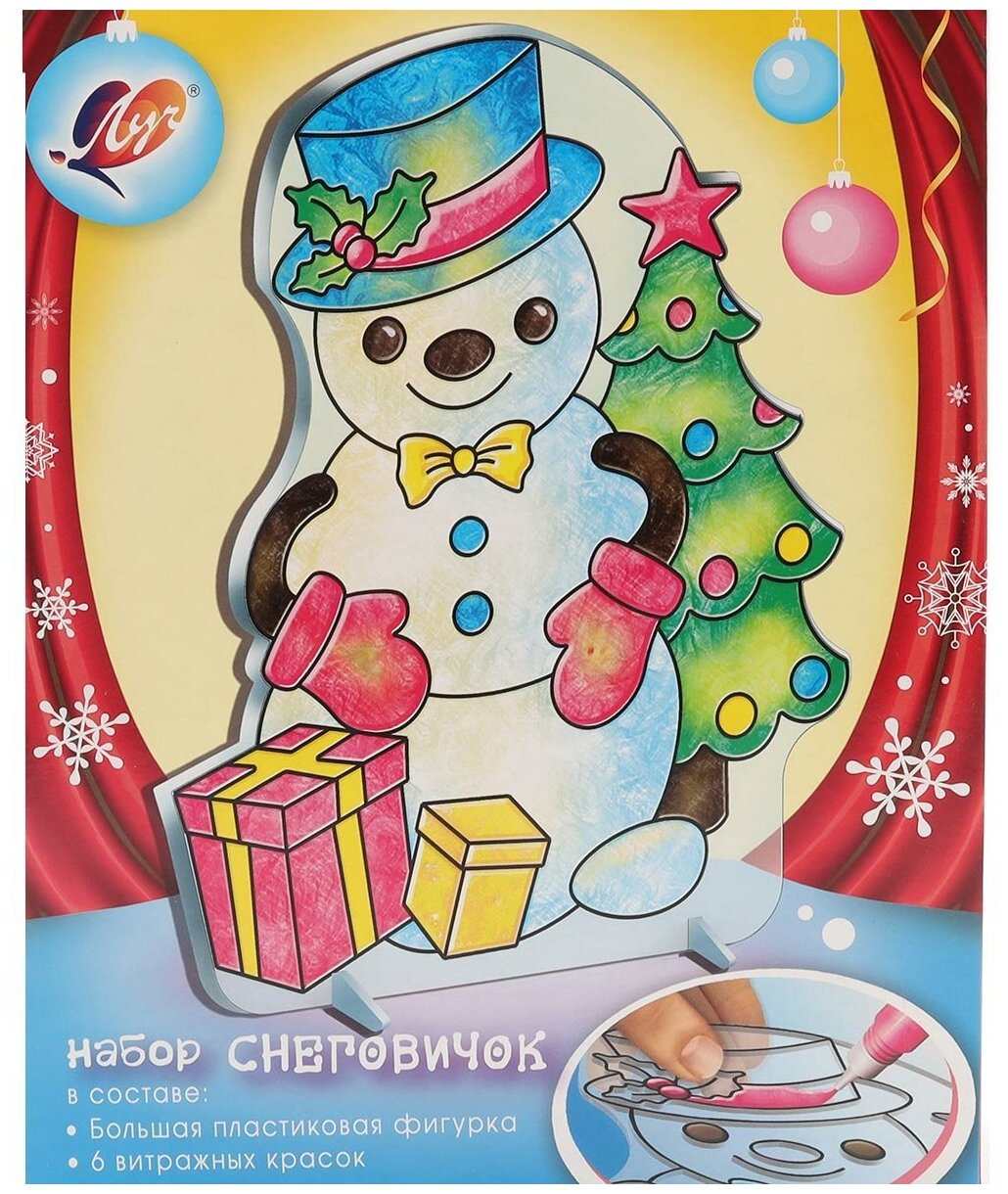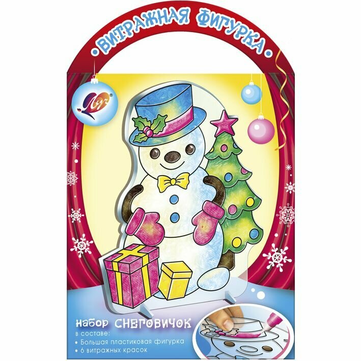Витражная фигурка. Набор красок по стеклу Снеговичок 6 цветов ЛУЧ
