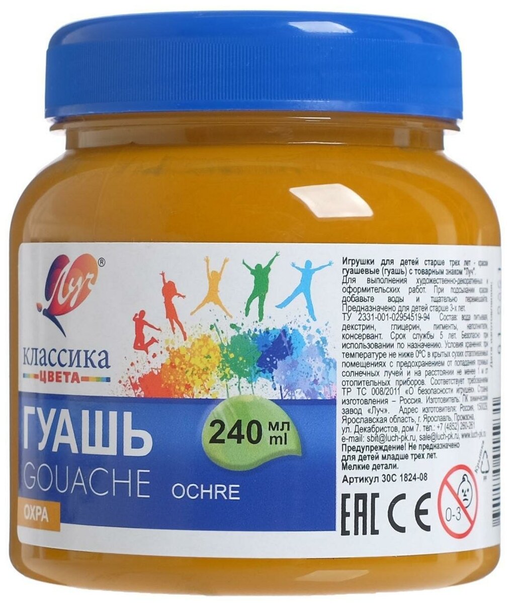 Краска хорошо смешивается с другими цветами, позволяя получать новые чистые цвета и оттенки. Объем гуаши в 240мл подходит для детских творческих занятий в садах и школах.