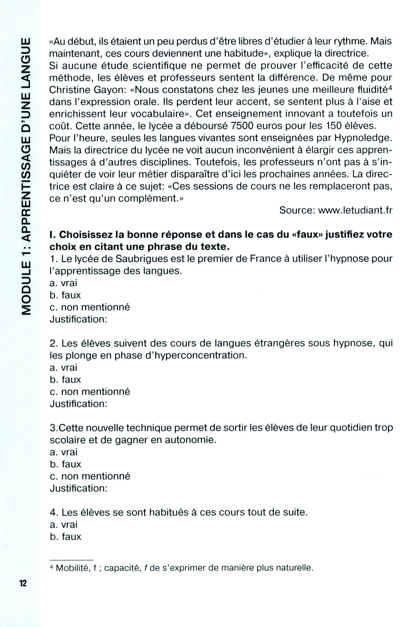 Учебное пособие адресовано студентам вузов, слушателям курсов французского языка, а также широкому кругу обучающихся, желающих успешно сдать экзамен DELF B1, совершенствовать умения понимания письменного текста и развить умения говорения. Издание имеет модульную организацию. Каждый тематический модуль состоит из двух разделов: чтение и говорение. В основу положены аутентичные разножанровые тексты, которые сопровождаются разнообразными заданиями на понимание прочитанного. Проблематика, затронутая в текстах, развивается в упражнениях, направленных на совершенствование монологической и диалогической речи.