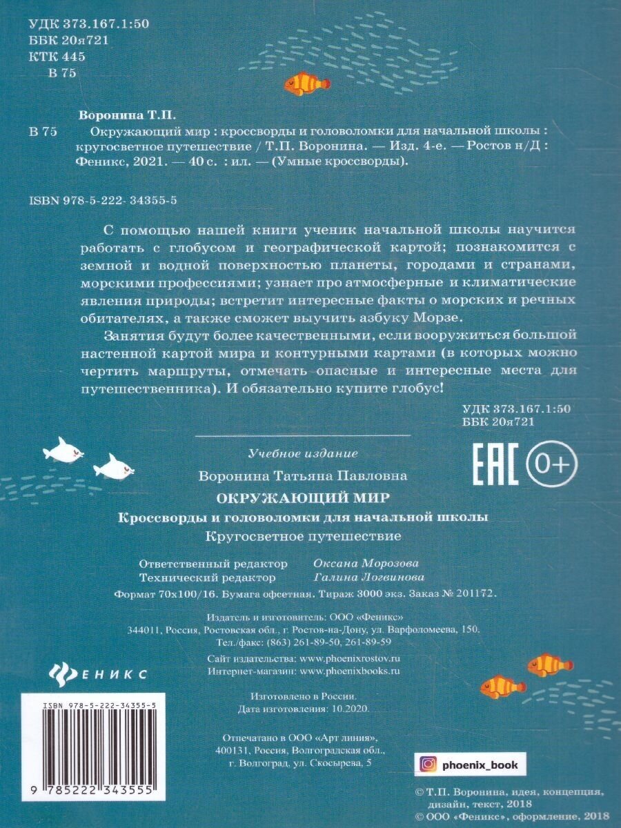 Окружающий мир. Кроссворды и головоломки для начальной школы. Кругосветное путешествие (Воронина Татьяна Павловна); Феникс, 2021
