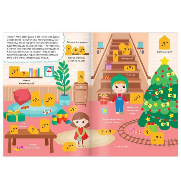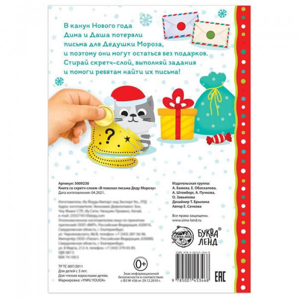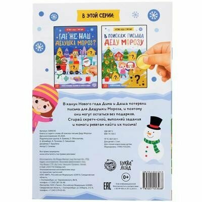Помогите героям книги Диме и Даше найти письма, которые они написали Деду Морозу, иначе ребята могут остаться без подарков. Подсказки спрятались под блестящим скретч-слоем. Скорее стирайте его монеткой и узнайте, куда подевались письма для новогоднего волшебника.