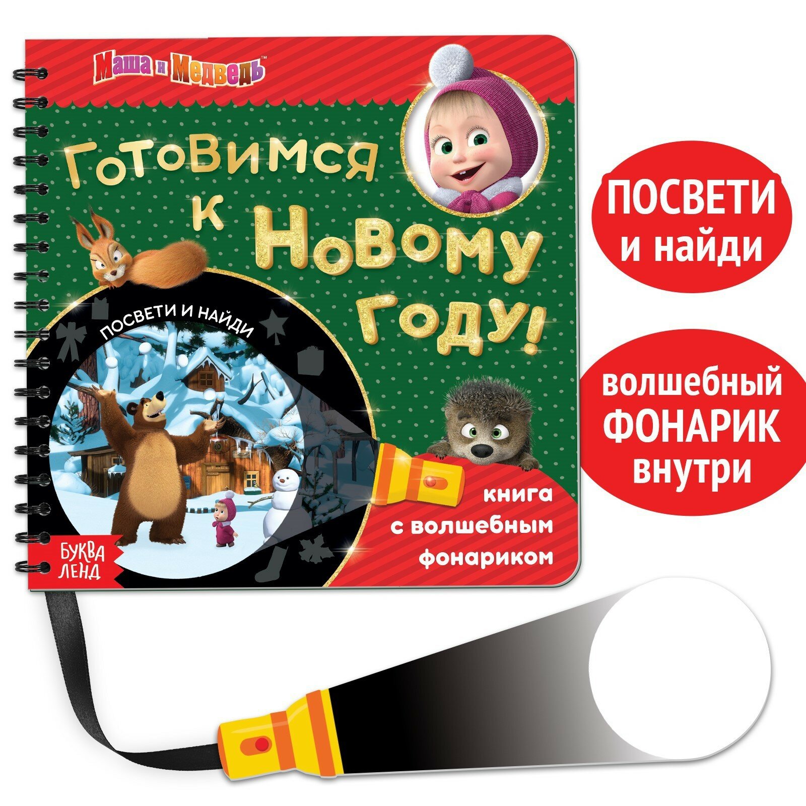 В поисках Нового года посвети и найди! Маша и Медведь. Книга с волшебным фонариком; Буква-ленд, 2022