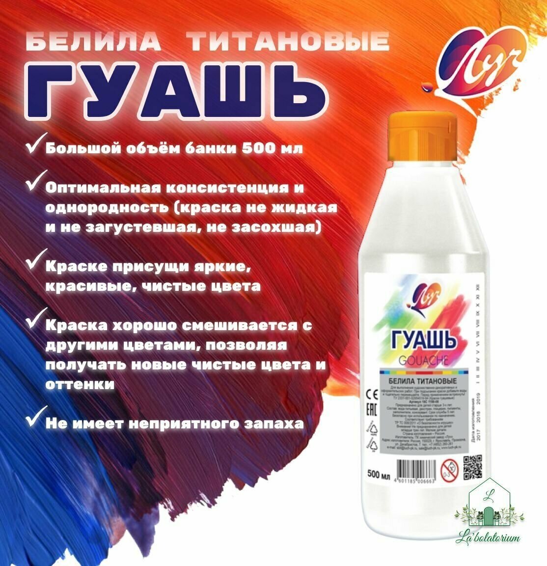 Гуашь легко смывается с рук и одежды. Не имеет неприятного запаха.
