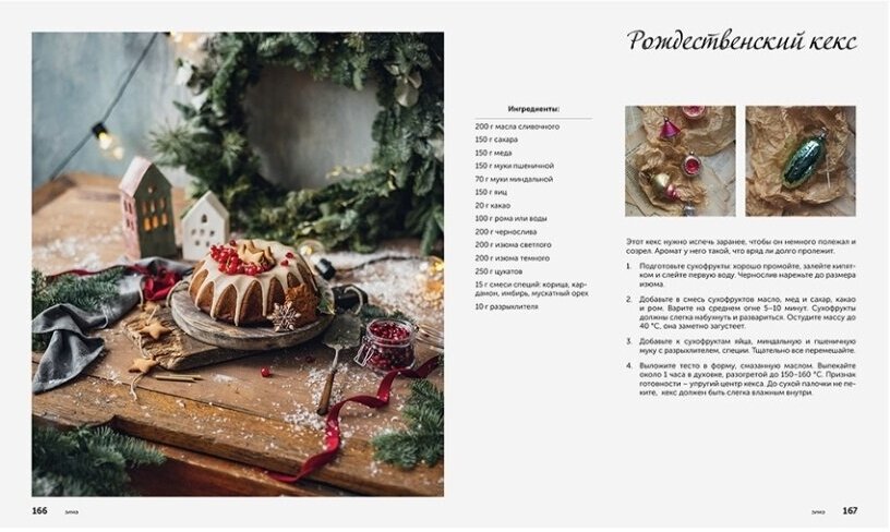 Как только увидела развороты книги, поняла — она моя. Дико атмосферная, с чудесными фотографиями, а от рождественского кекса прямо с картинки выпечкой пахнет. Уже успела сделать тыквенный пирог и украсить квартиру осенними листьями по совету авторов. Теперь живу в октябрьской сказке). Кстати, многие идеи можно сделать милыми семейными традициями. А еще очень понравились сезонные чек-листы, с ними жизнь куда веселее.